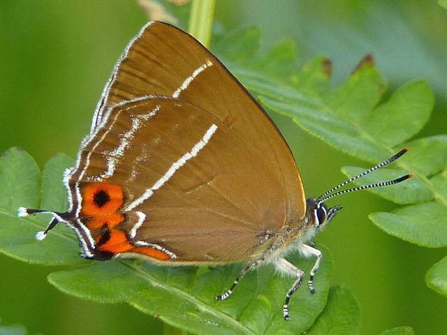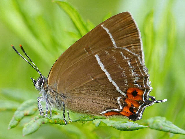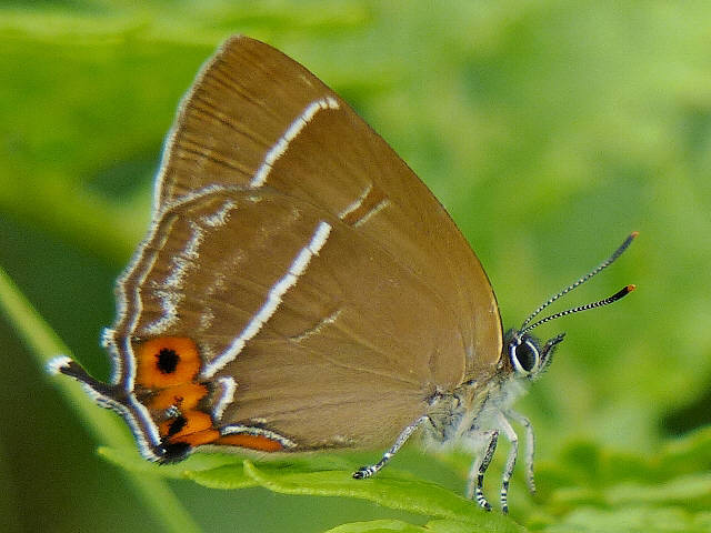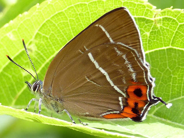 後翅の付け根(基部)近くの白い短い帯(短条)がこのように目立つのは希のようです。