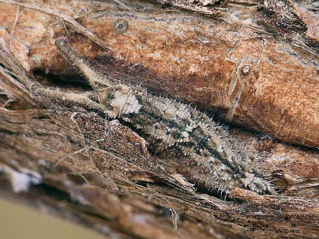 令和6年2月22日(木)。幼虫は1cmに満たず、探すのはとても難しい。