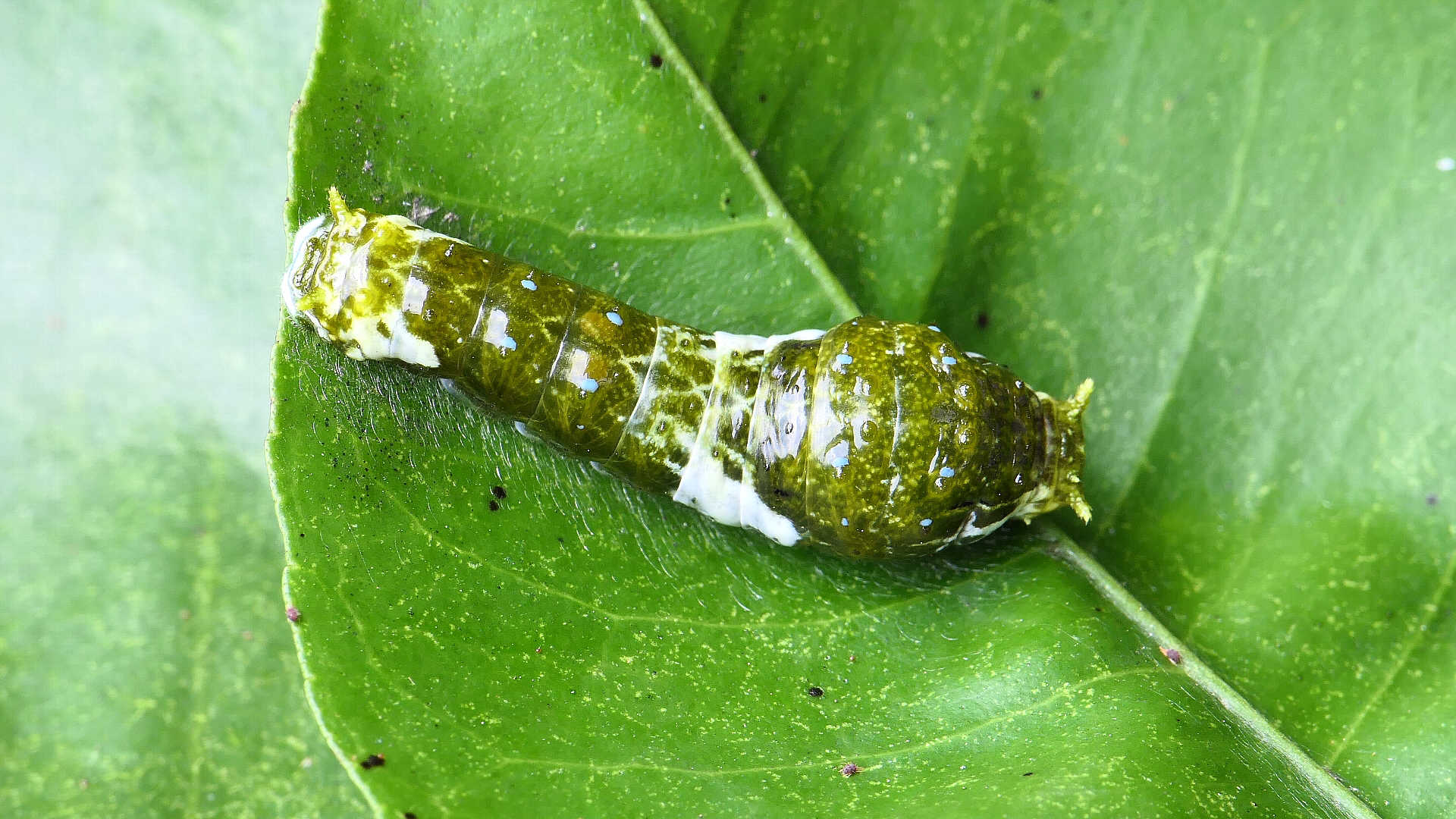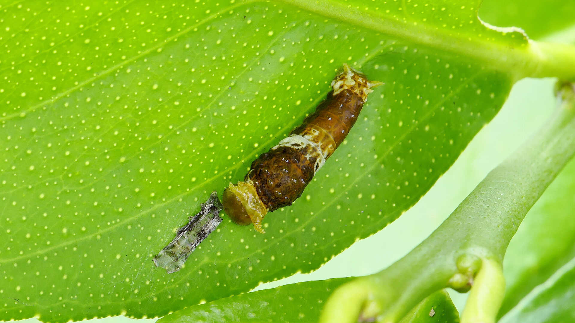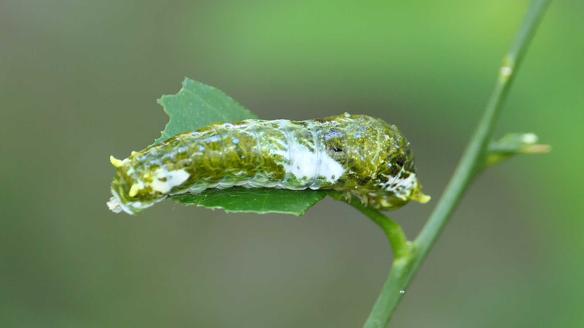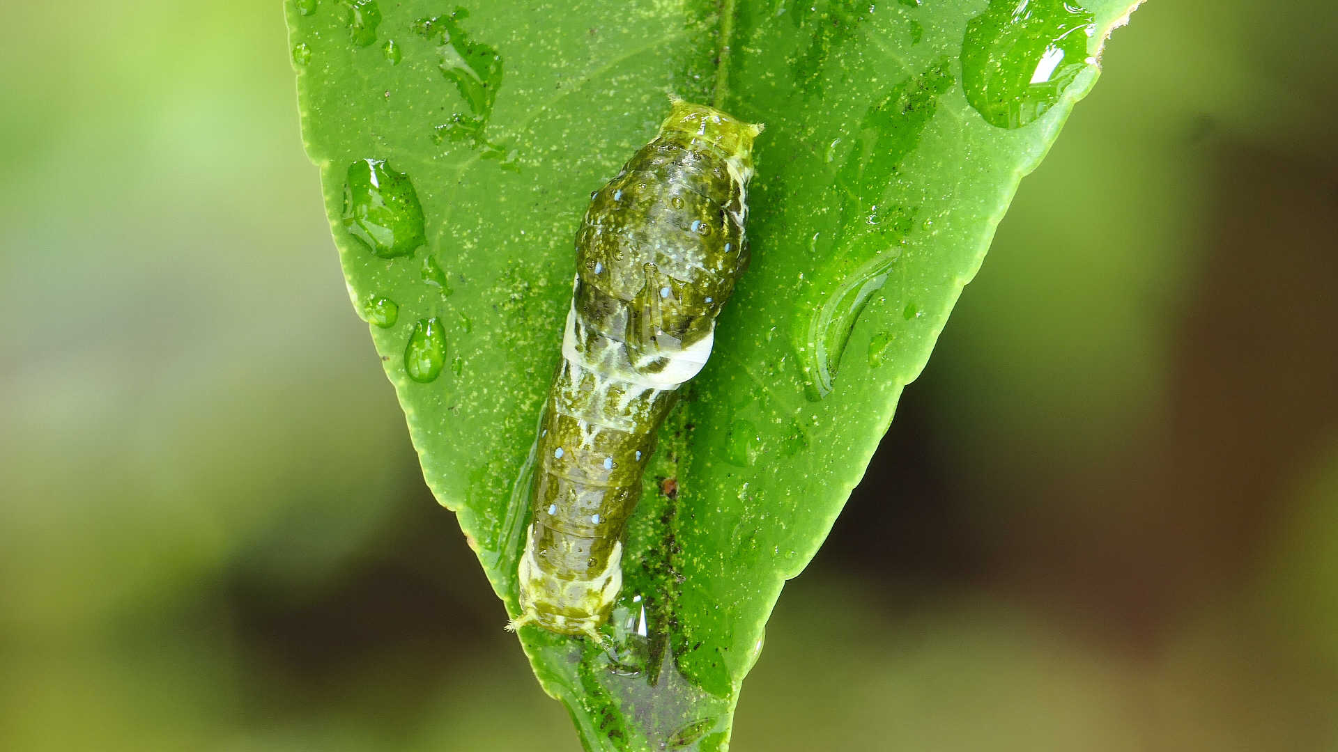 今日の一枚_01。ナガサキアゲハ、前蛹。纏わり付いていた寄生蜂は潰している。