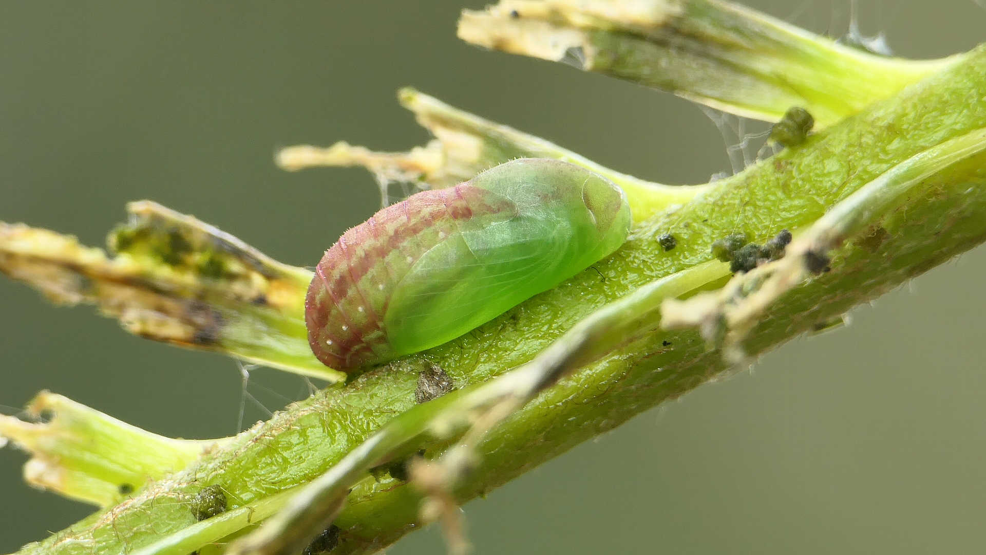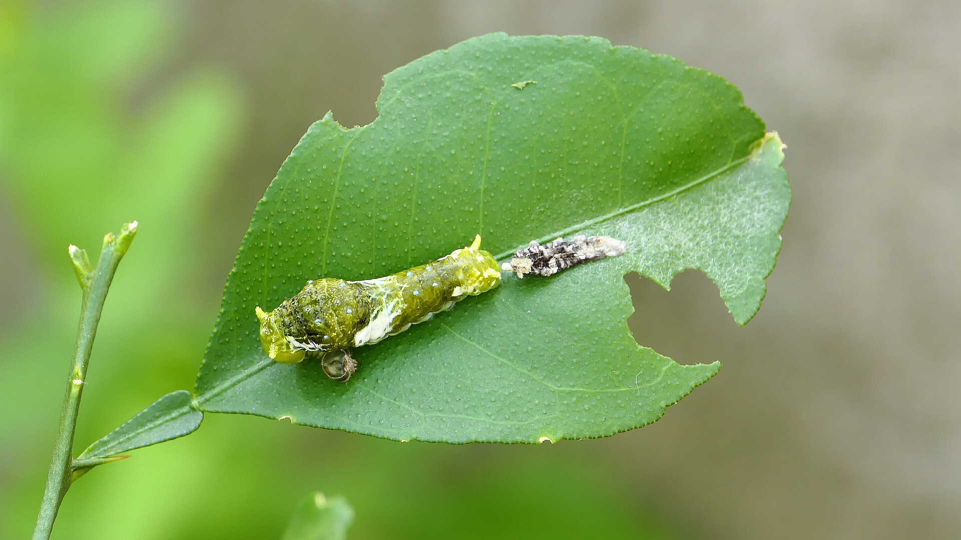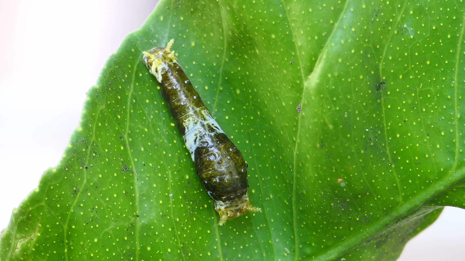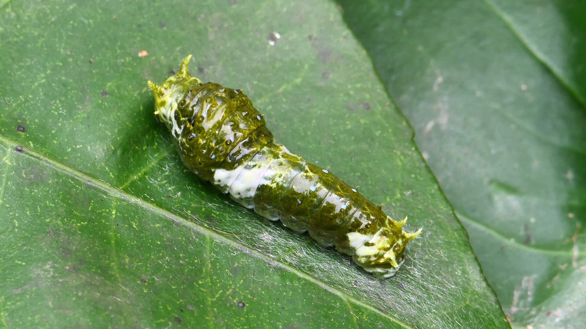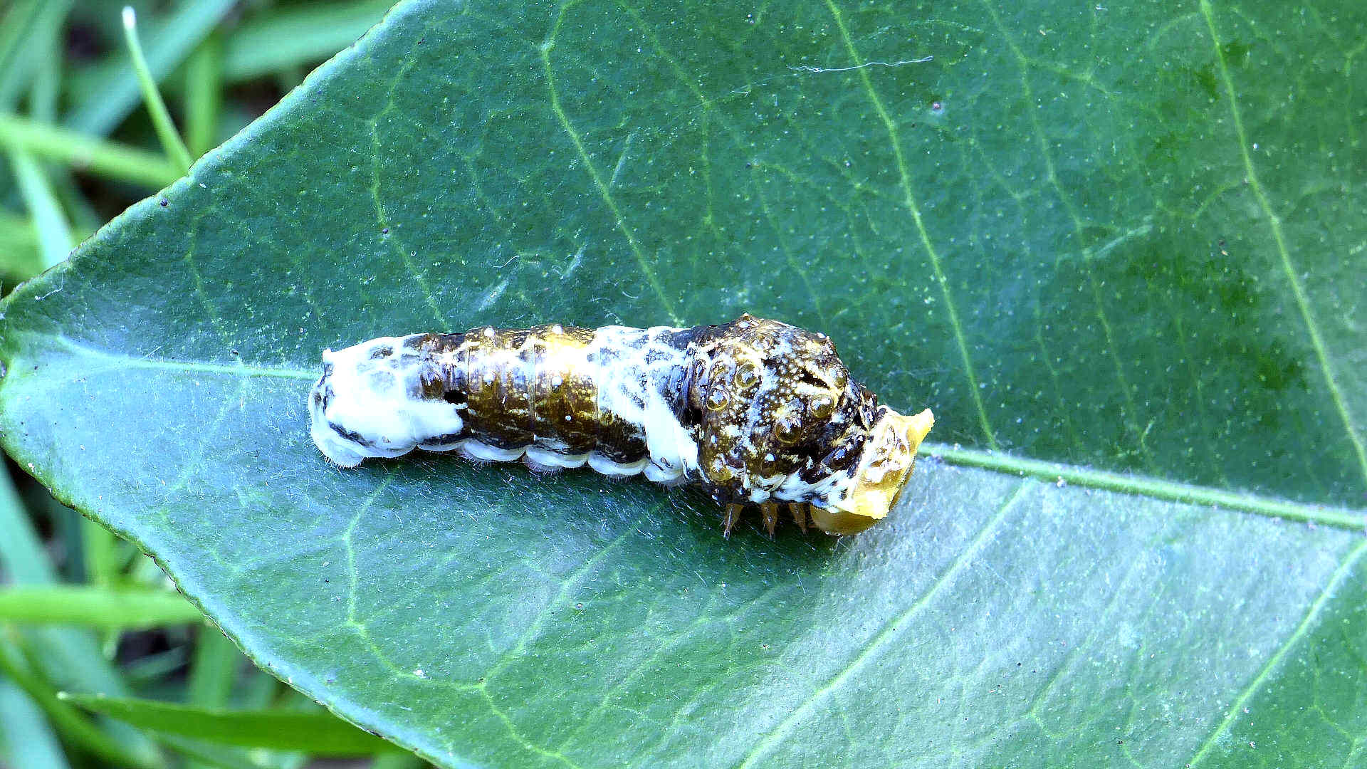 今日の一枚_01。ナガサキアゲハ、前蛹。纏わり付いていた寄生蜂は潰している。