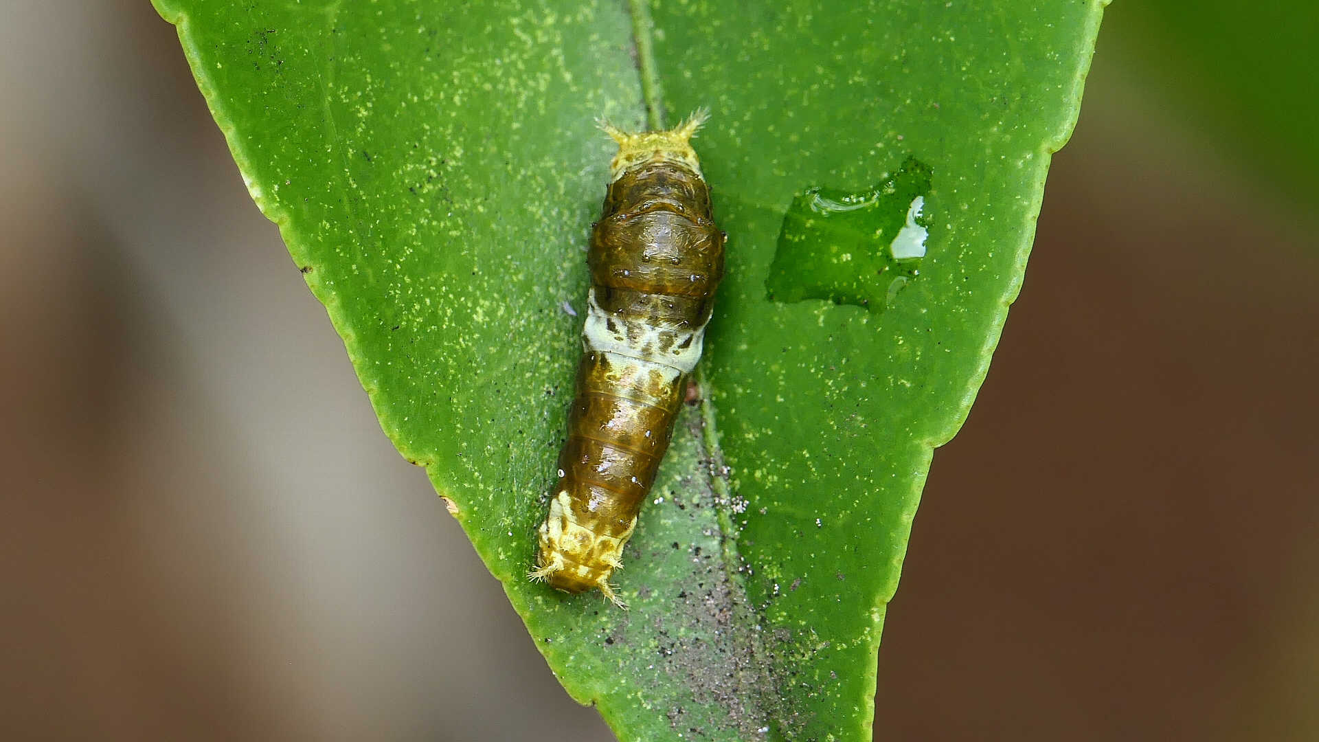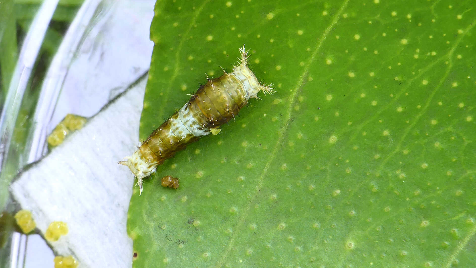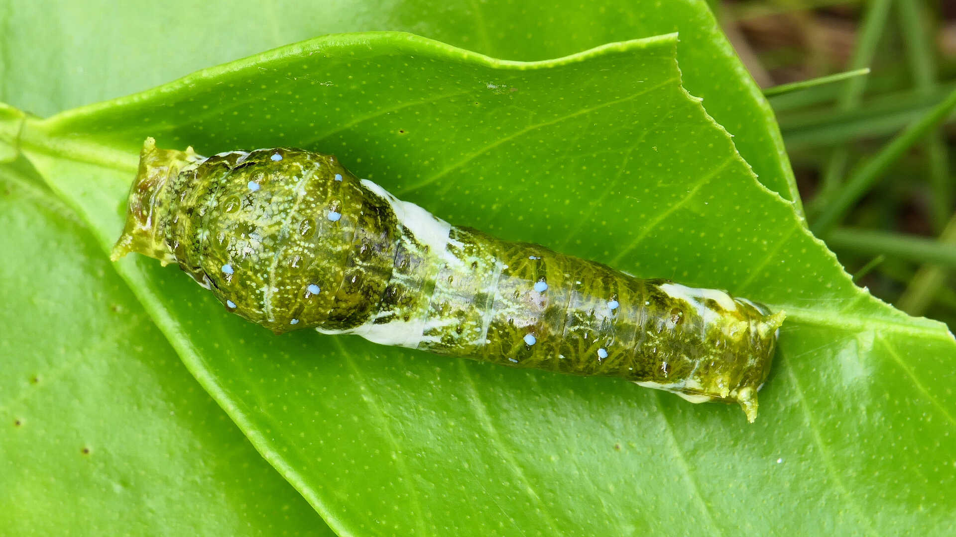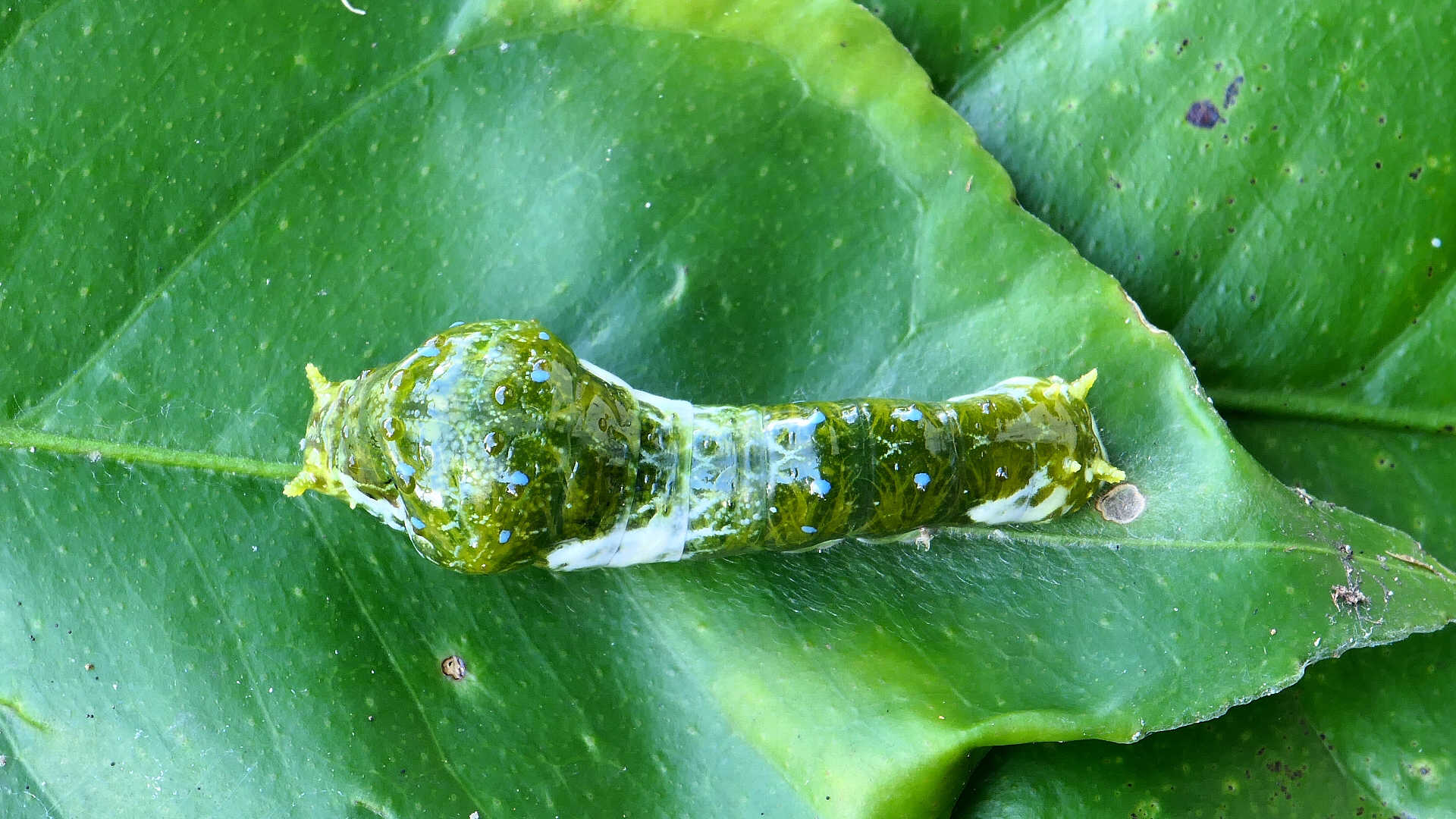 今日の一枚_01。ナガサキアゲハ、前蛹。纏わり付いていた寄生蜂は潰している。