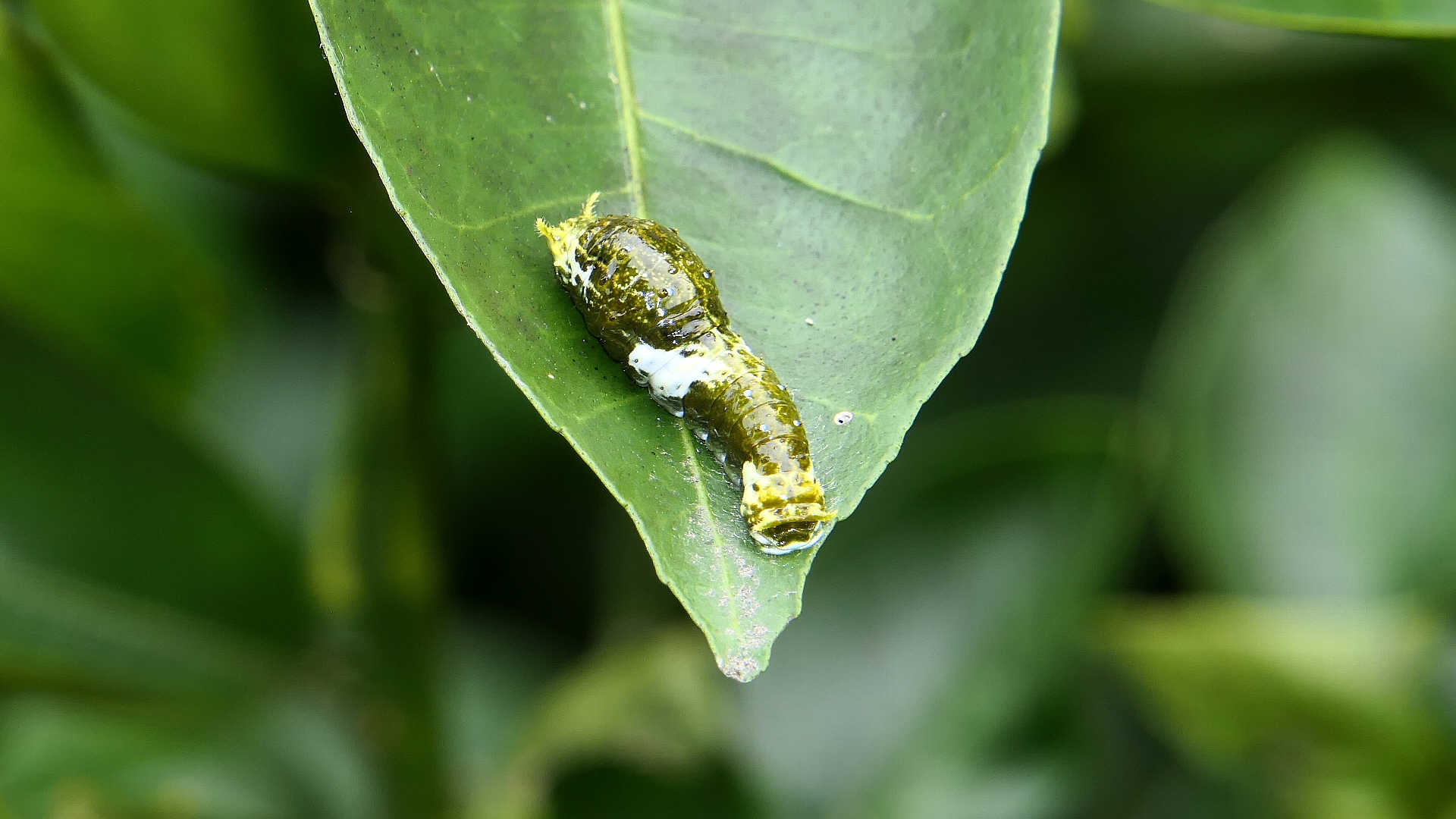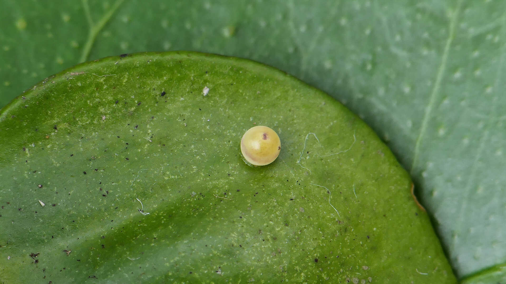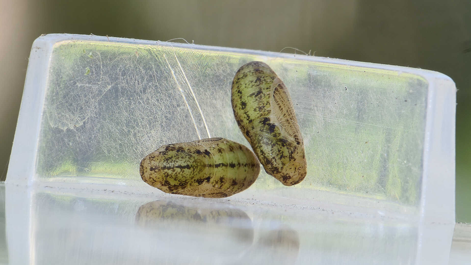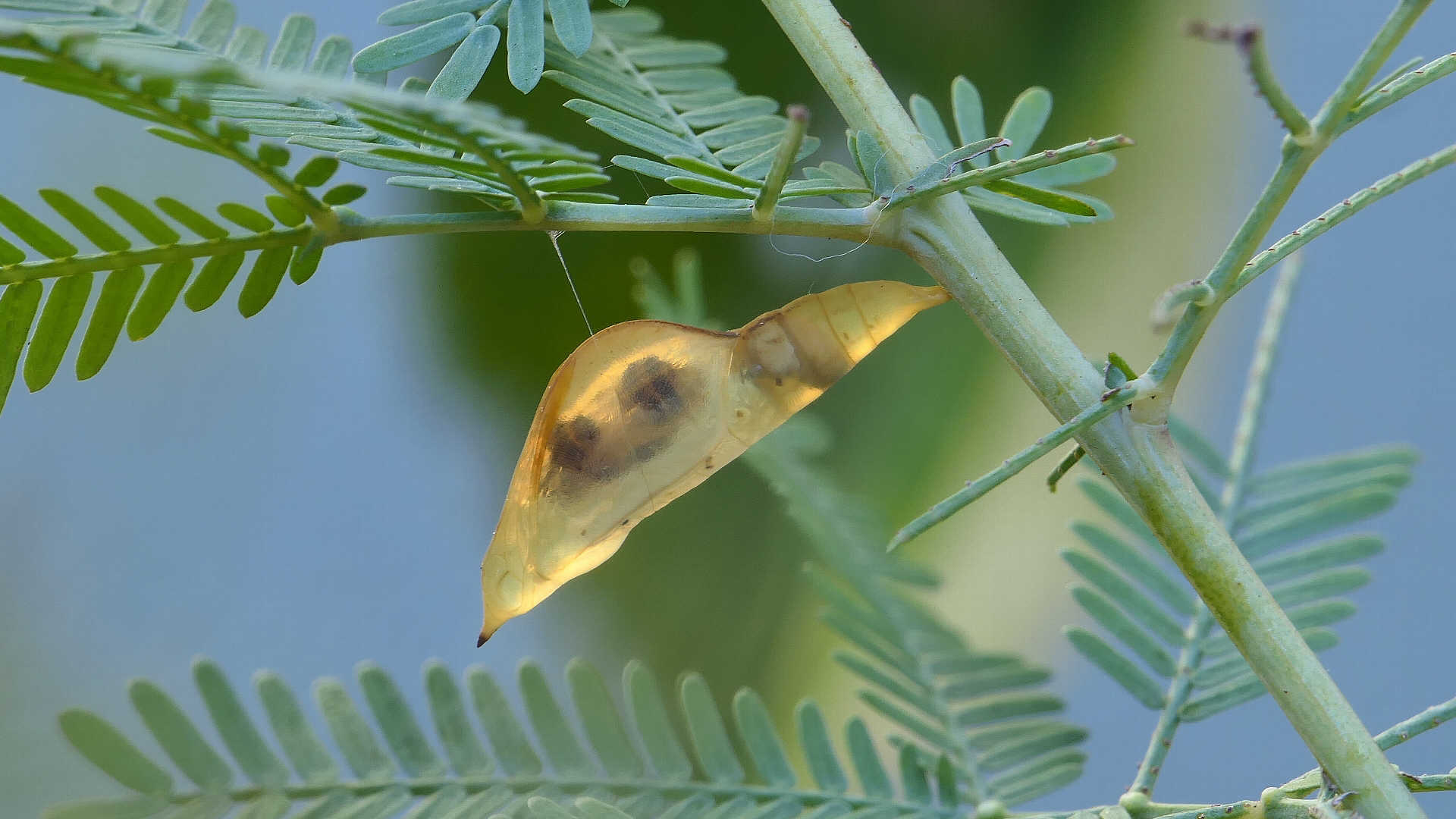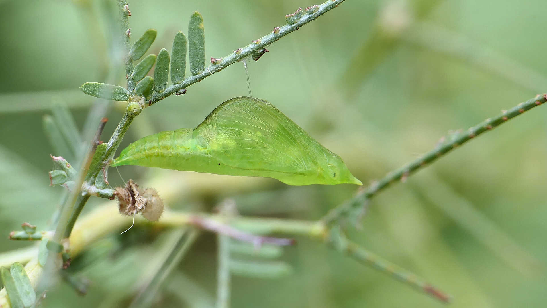 今日の一枚_01。ナガサキアゲハ、前蛹。纏わり付いていた寄生蜂は潰している。