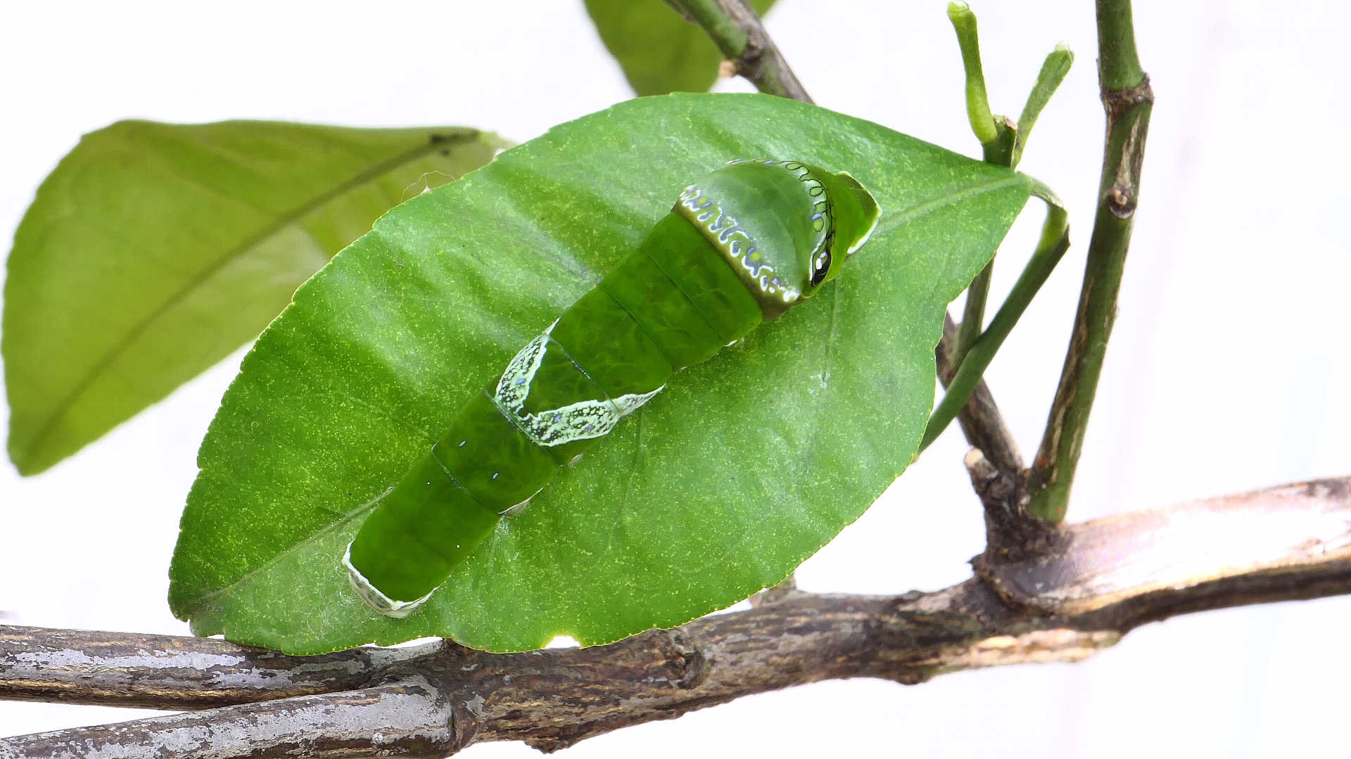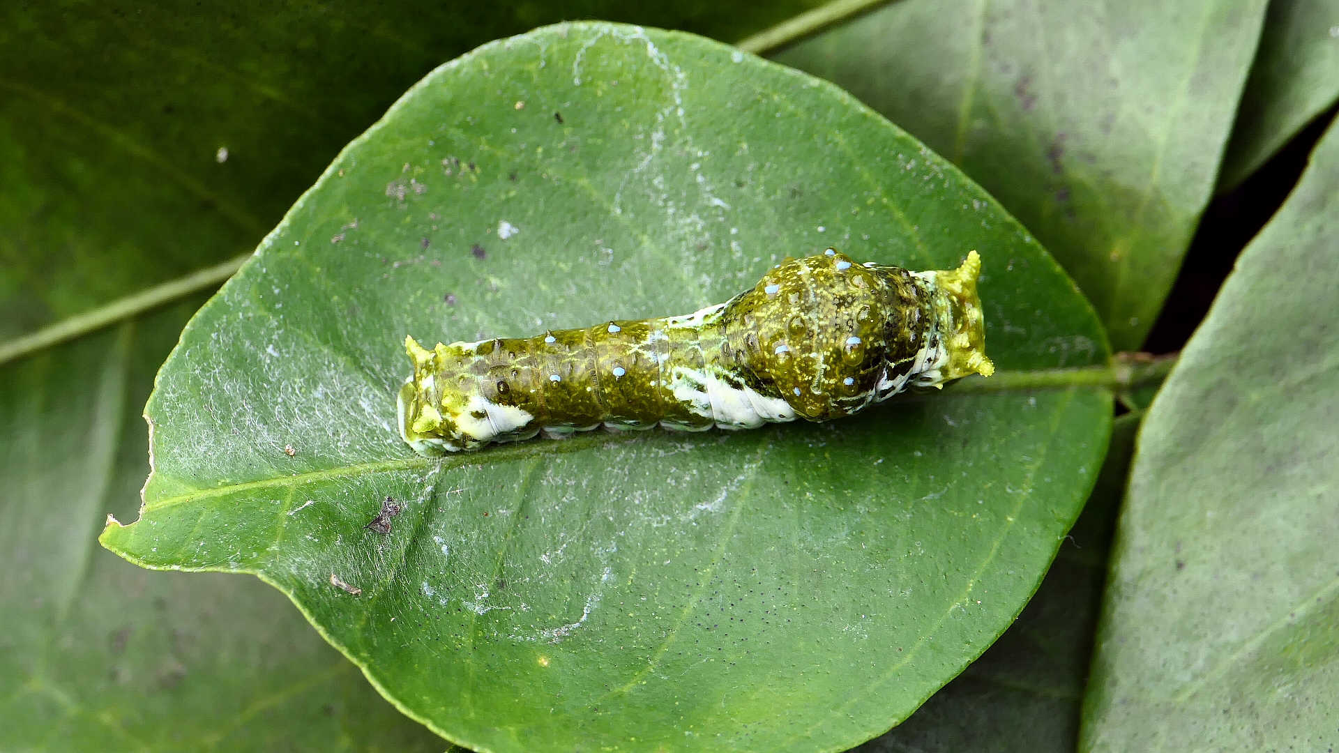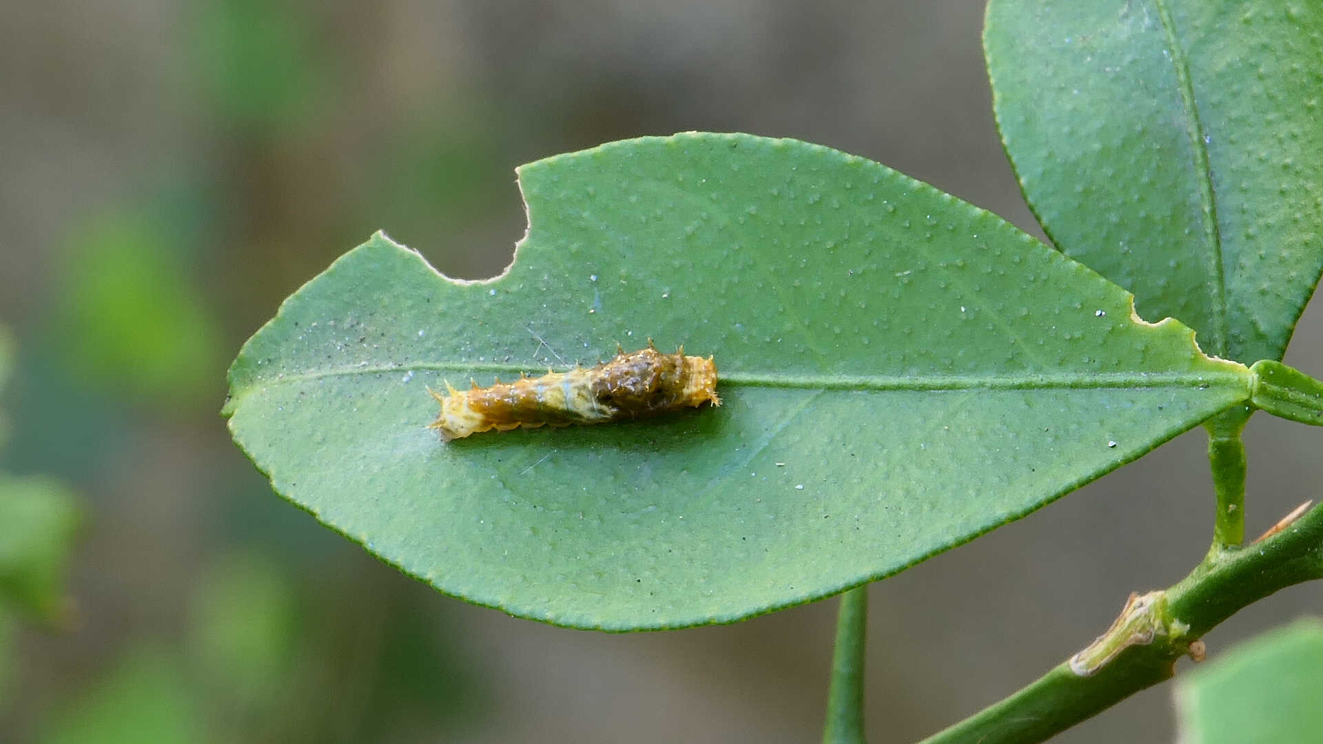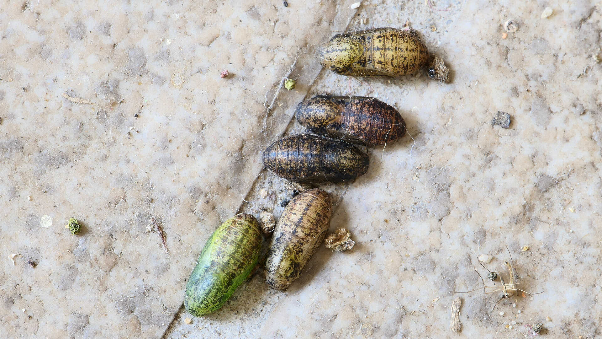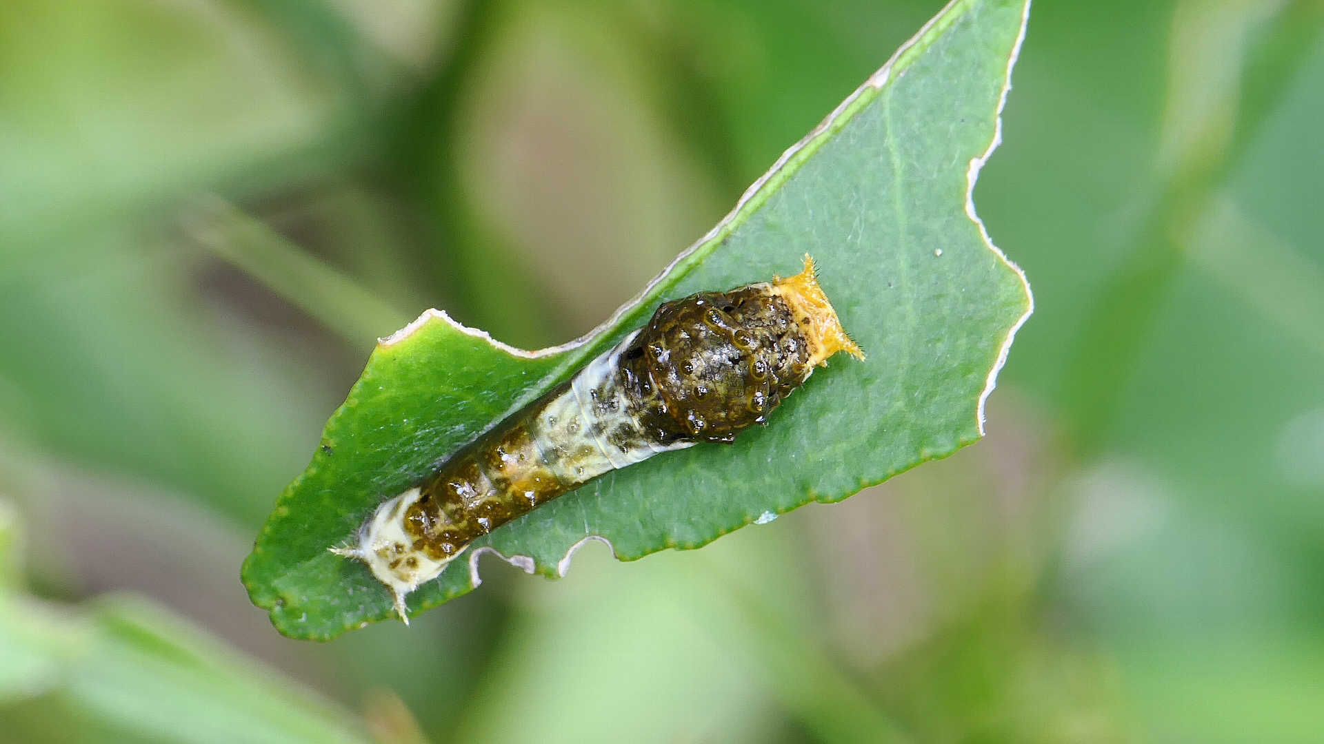 今日の一枚_01。ナガサキアゲハ、前蛹。纏わり付いていた寄生蜂は潰している。