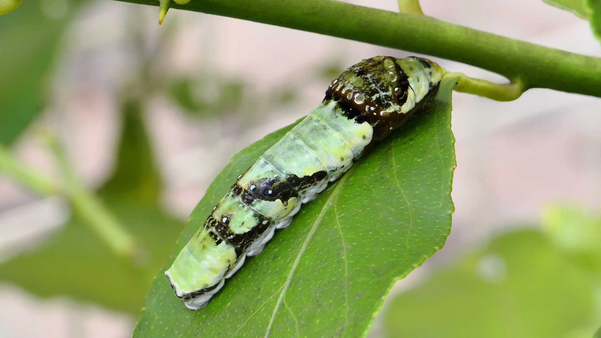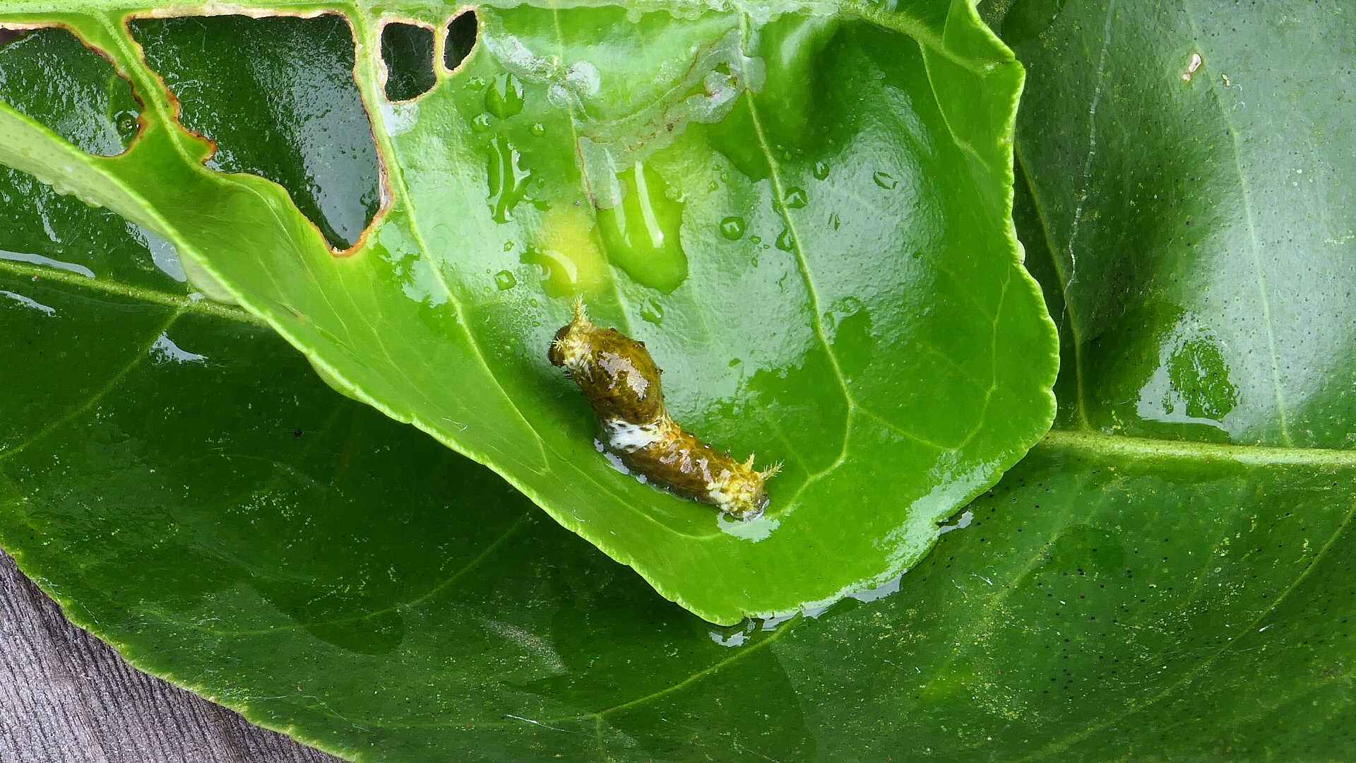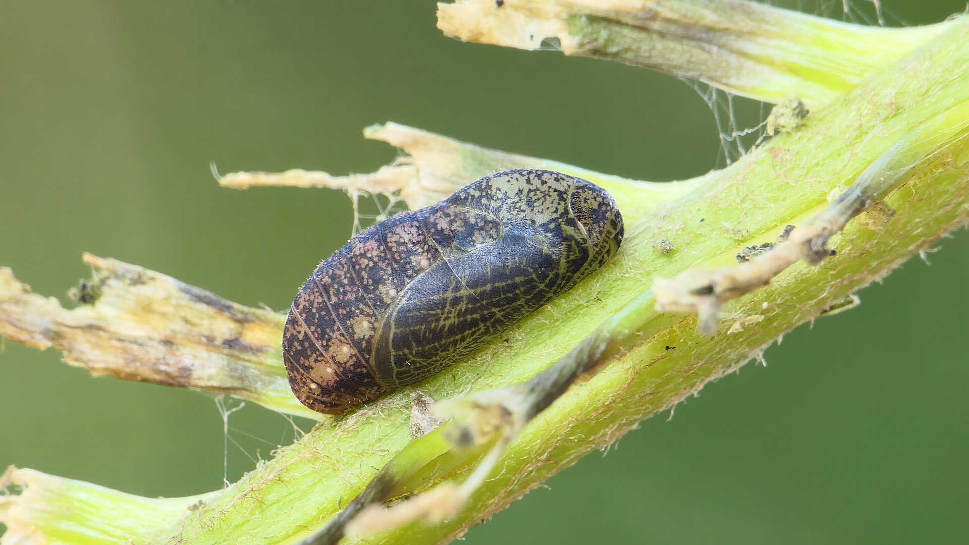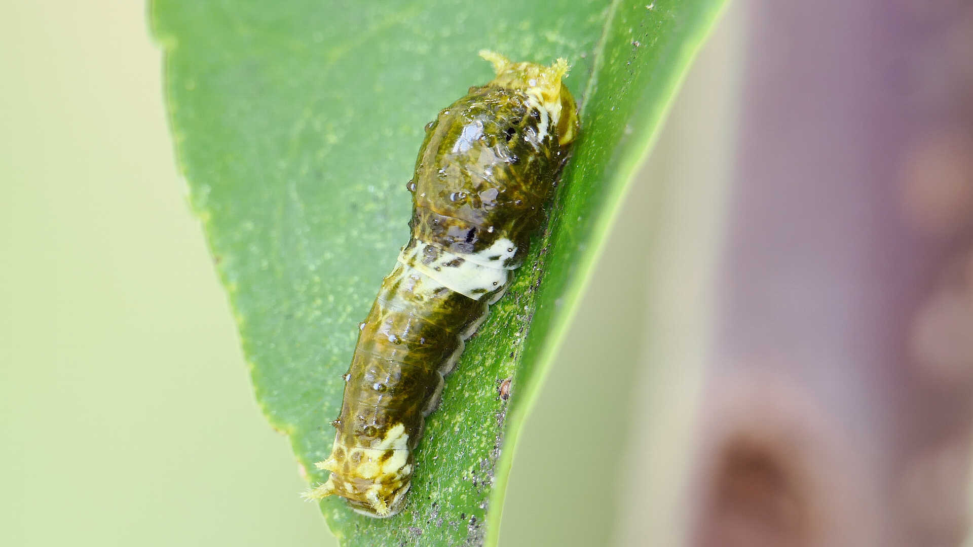 今日の一枚_01。ナガサキアゲハ、前蛹。纏わり付いていた寄生蜂は潰している。