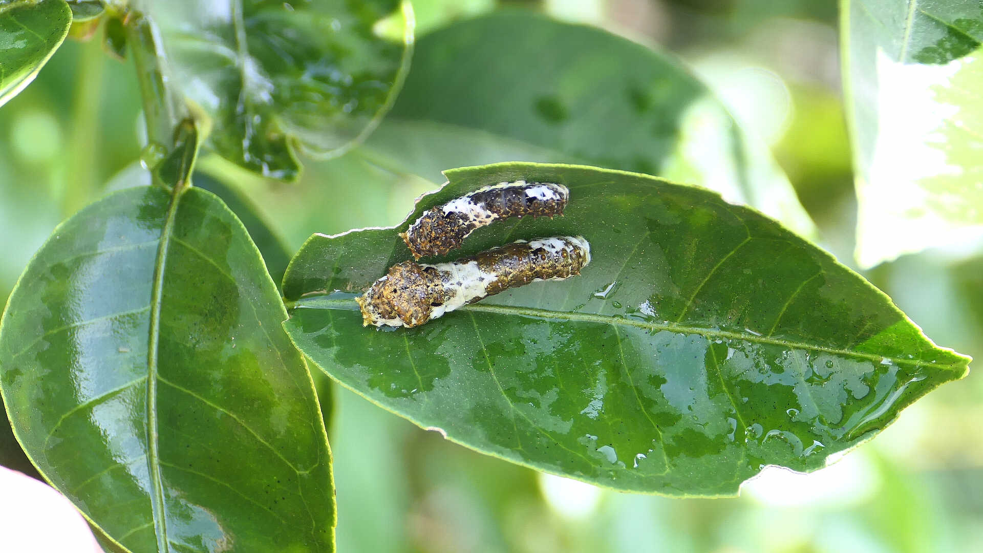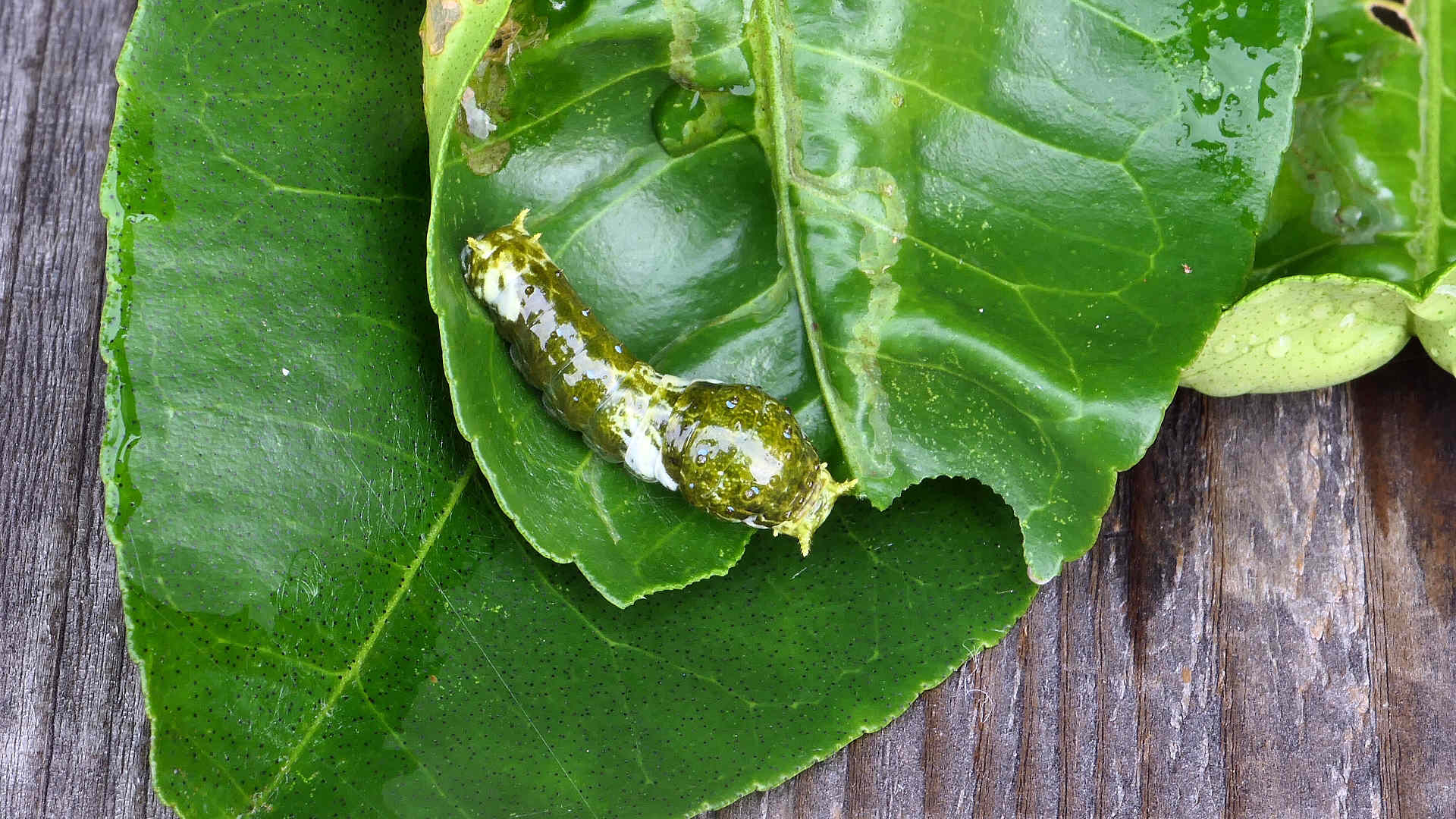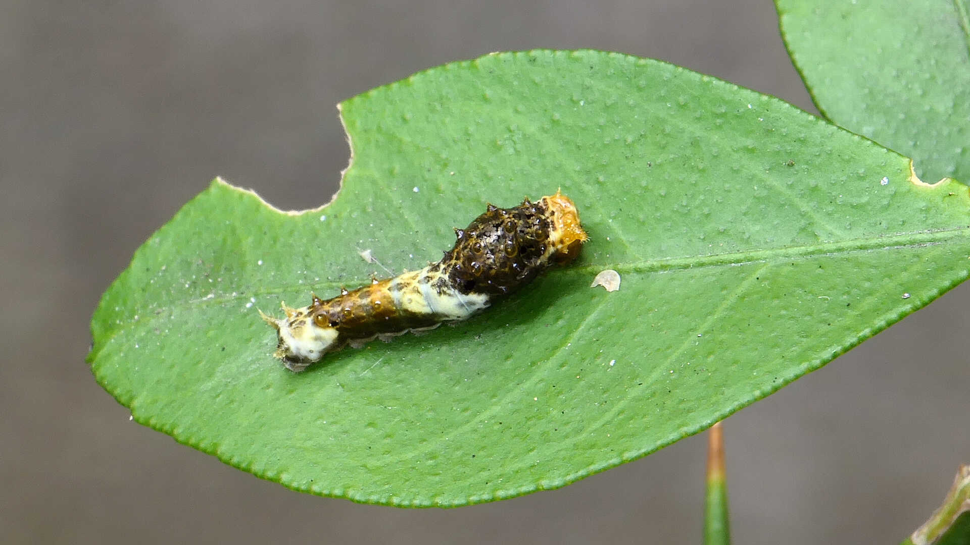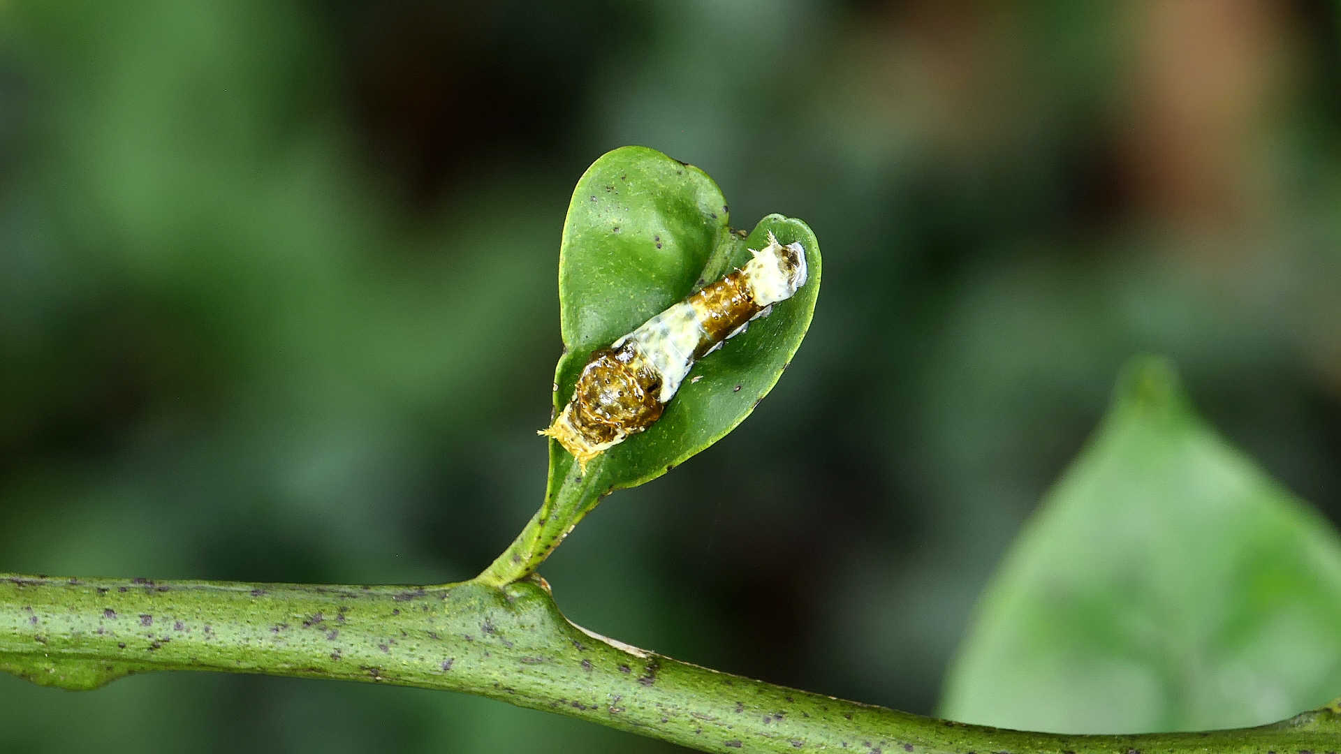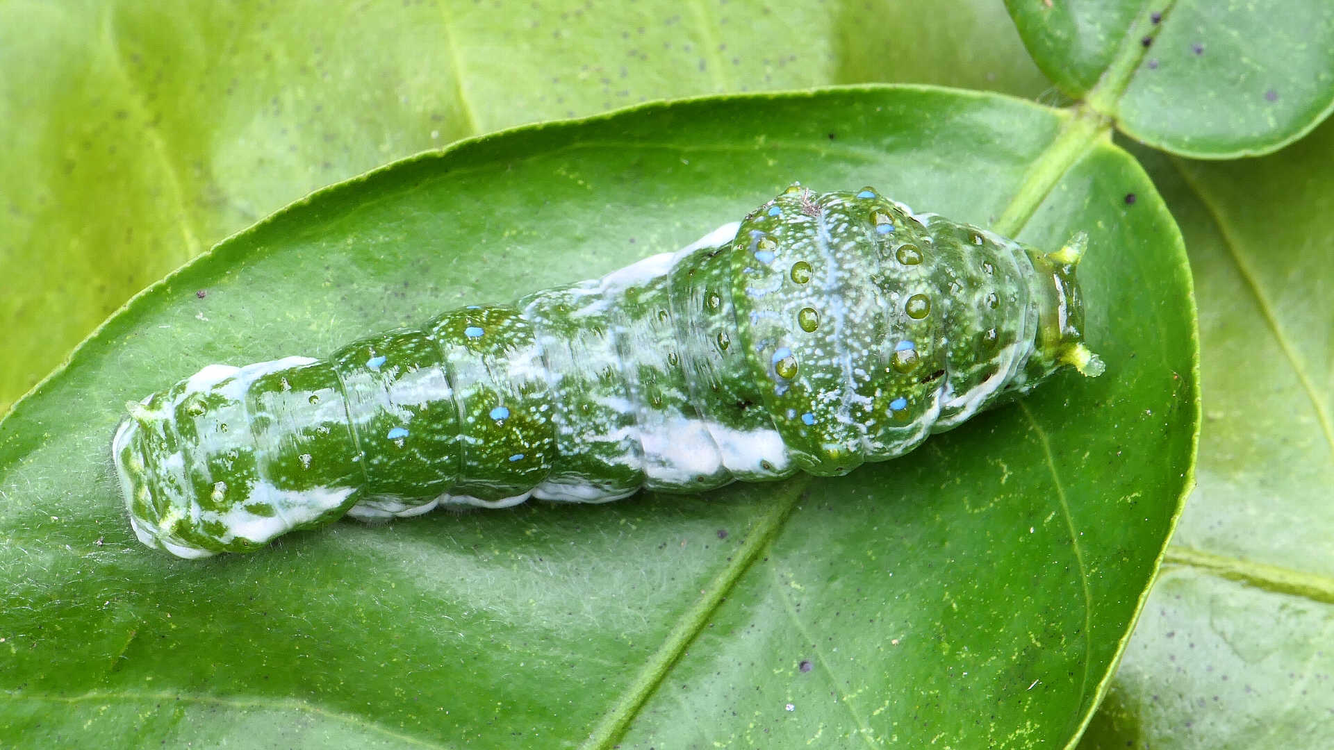 今日の一枚_01。ナガサキアゲハ、前蛹。纏わり付いていた寄生蜂は潰している。