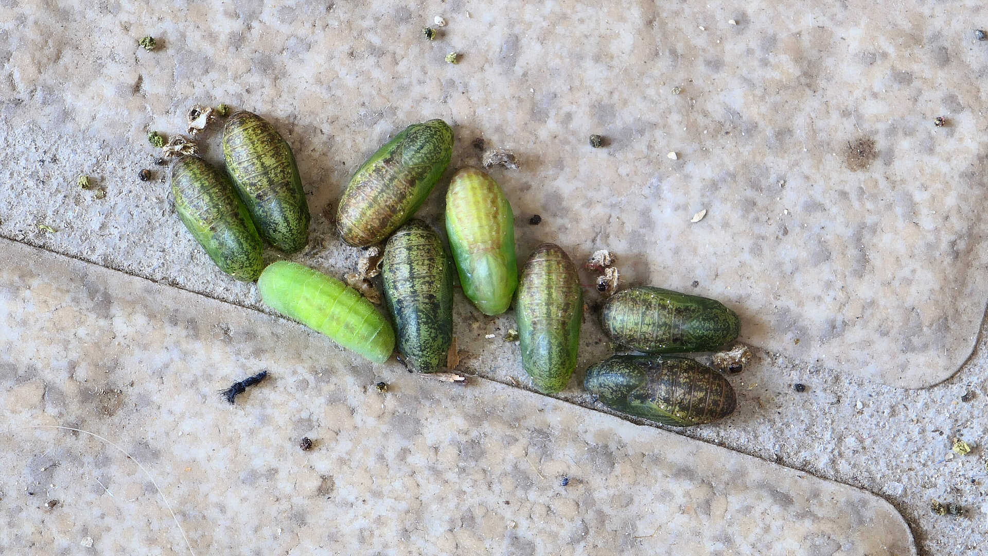 今日の一枚_07。ナガサキアゲハ、蛹。10月14日(火)の01と同じ個体。