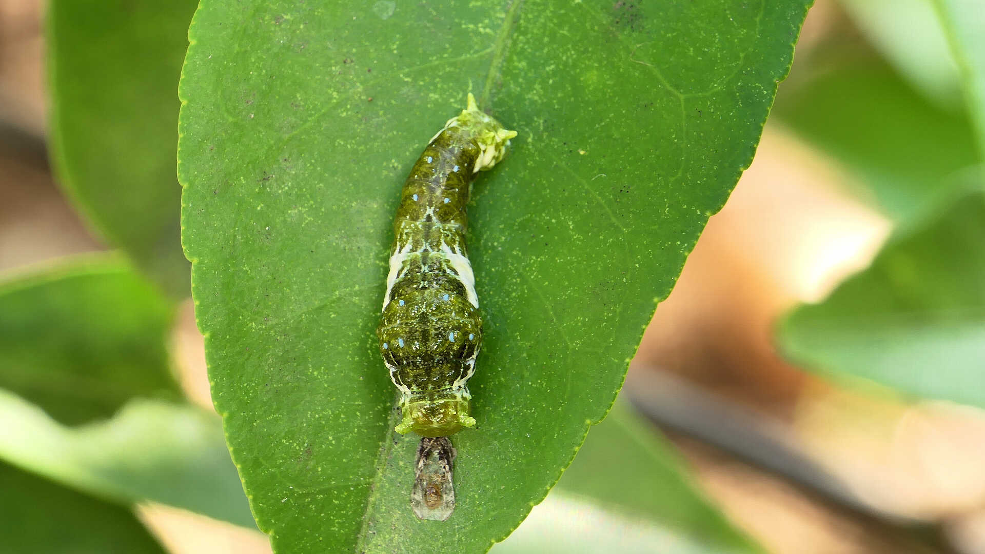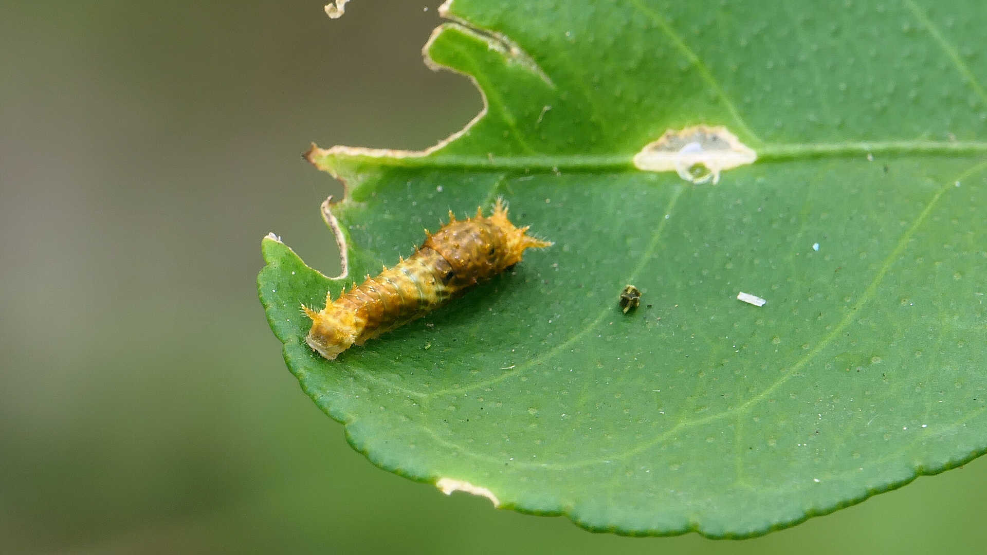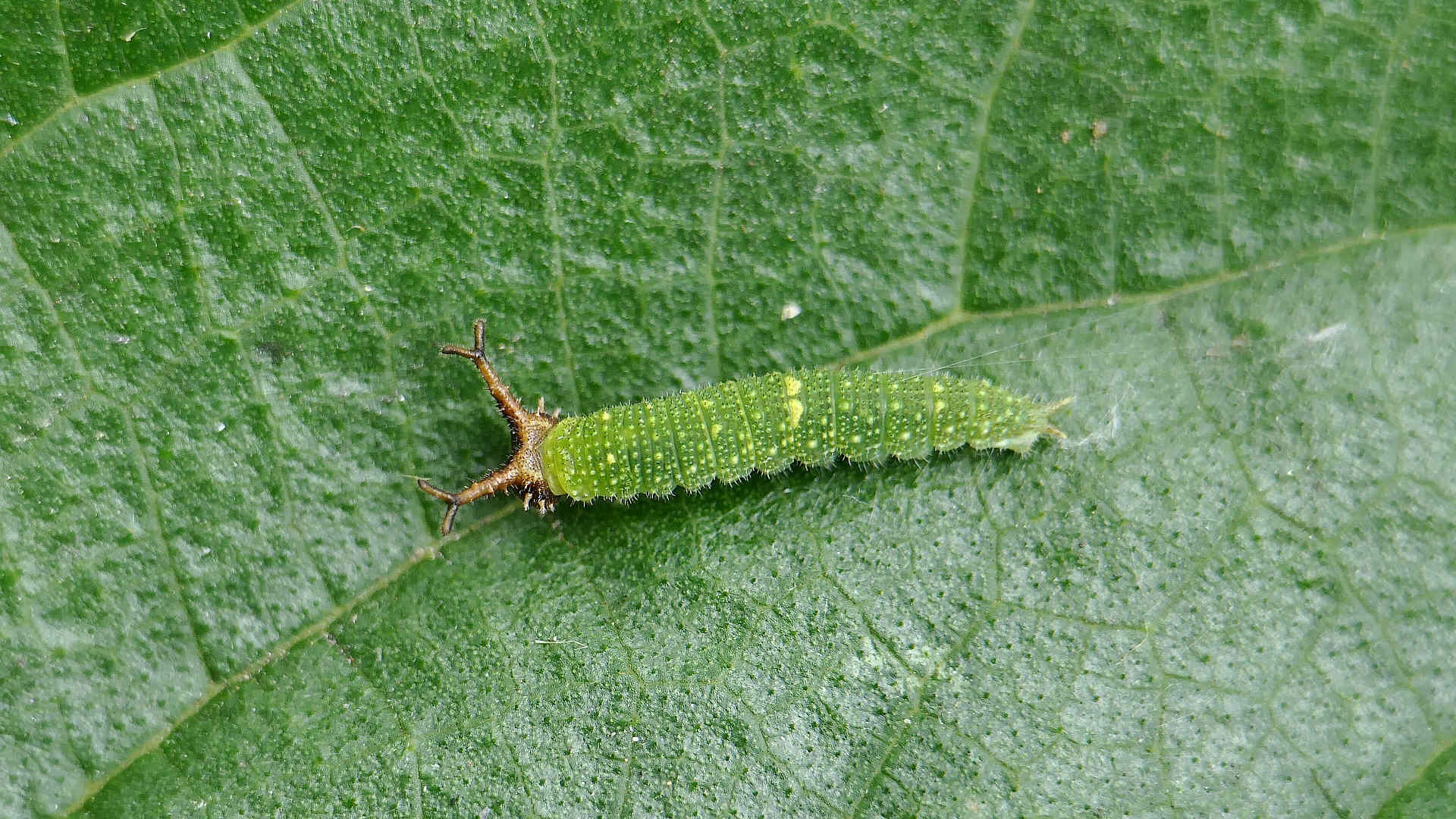今日の一枚_02。ゴマダラチョウ、幼虫。近所の公園。
