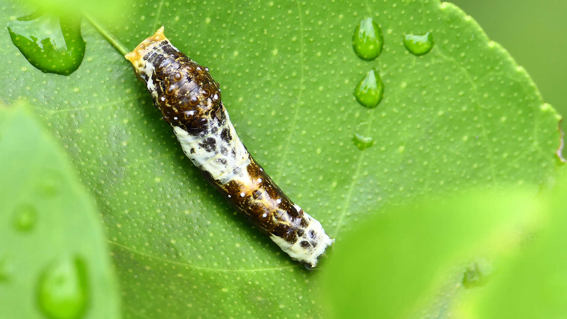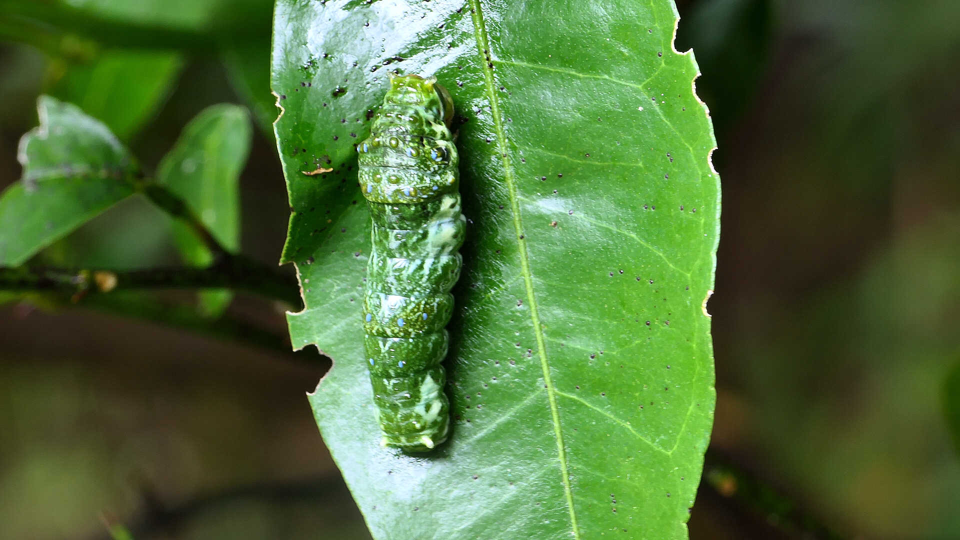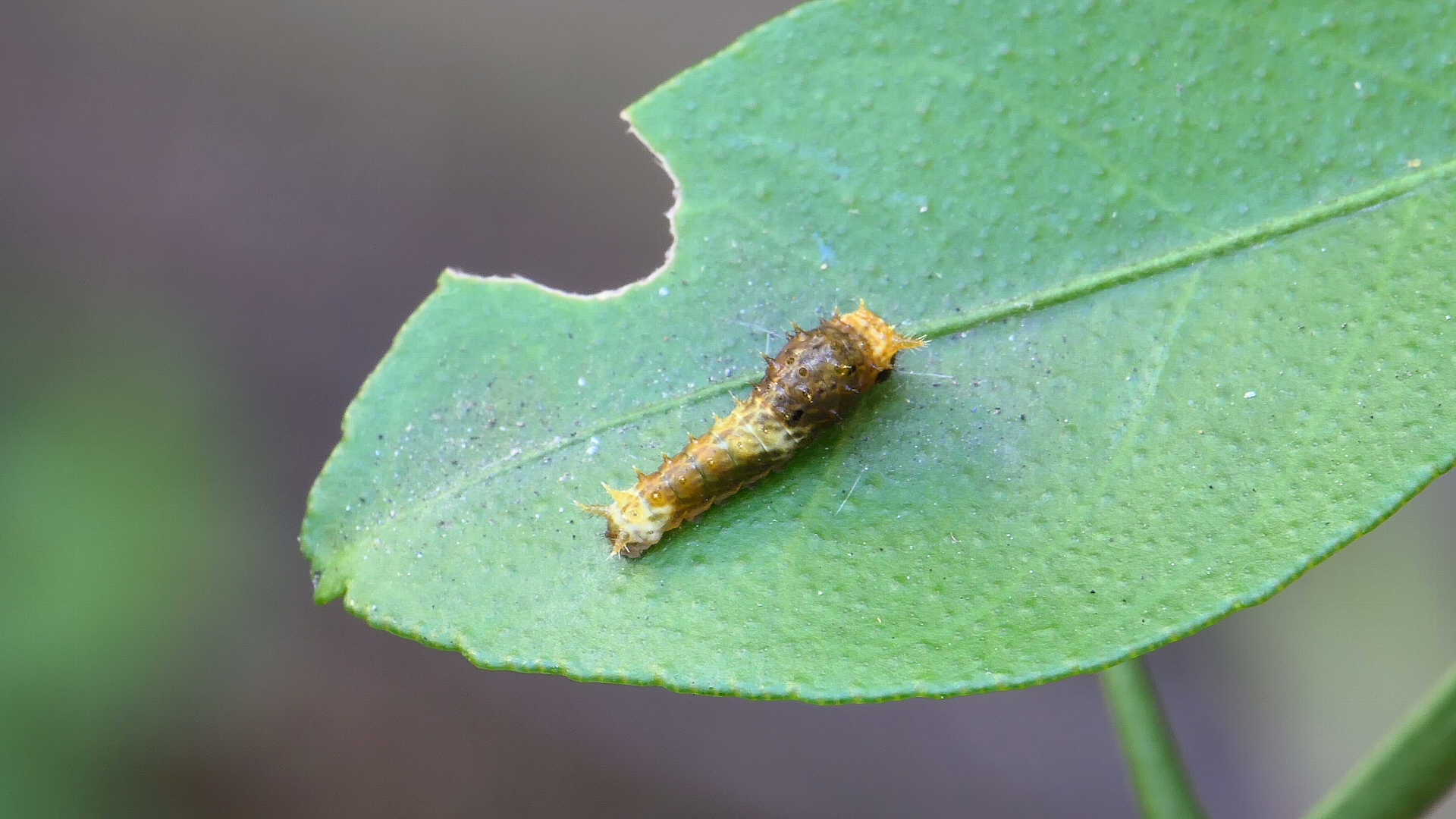 今日の一枚_02。ゴマダラチョウ、幼虫。近所の公園。