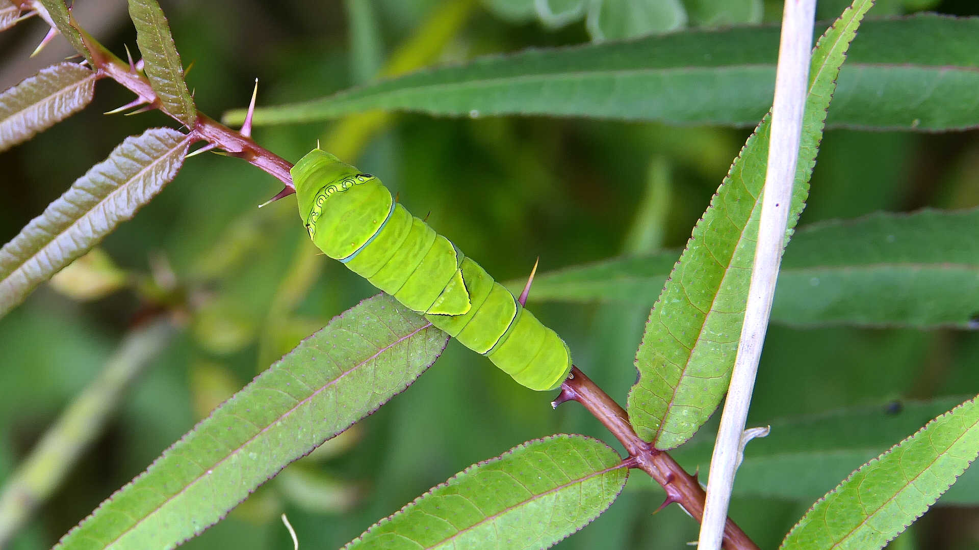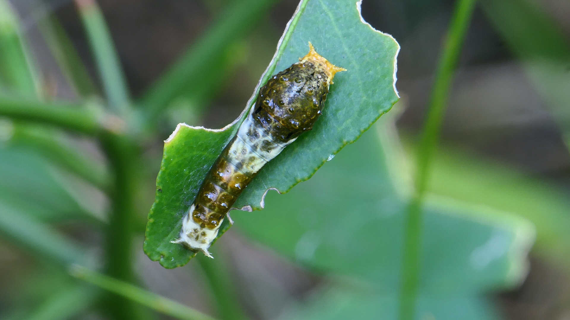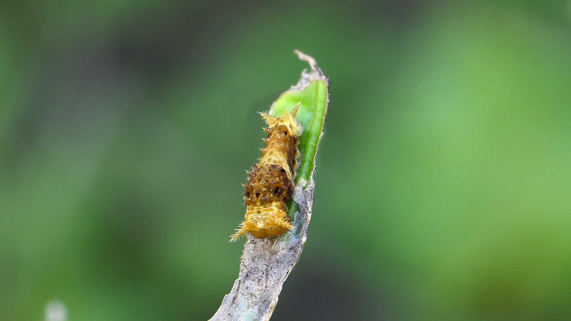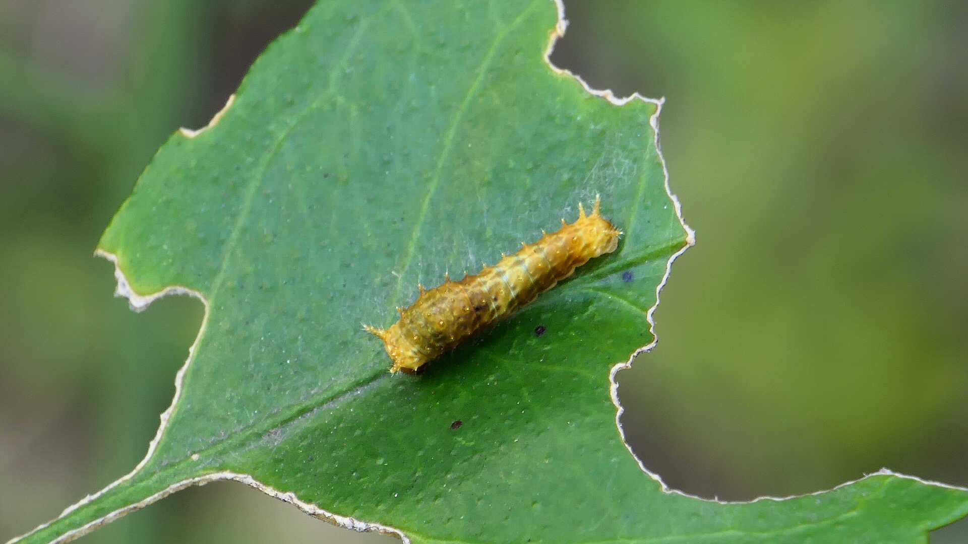 今日の一枚_01。ゴマダラチョウ、幼虫。乙津川河川敷、中榎。