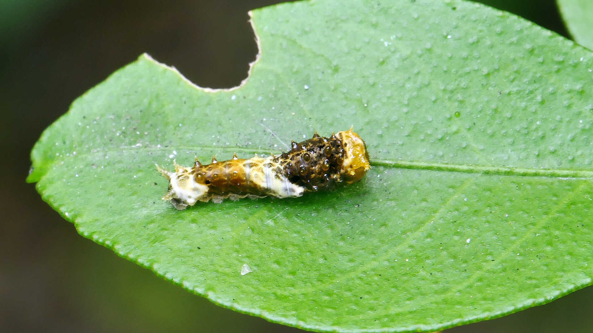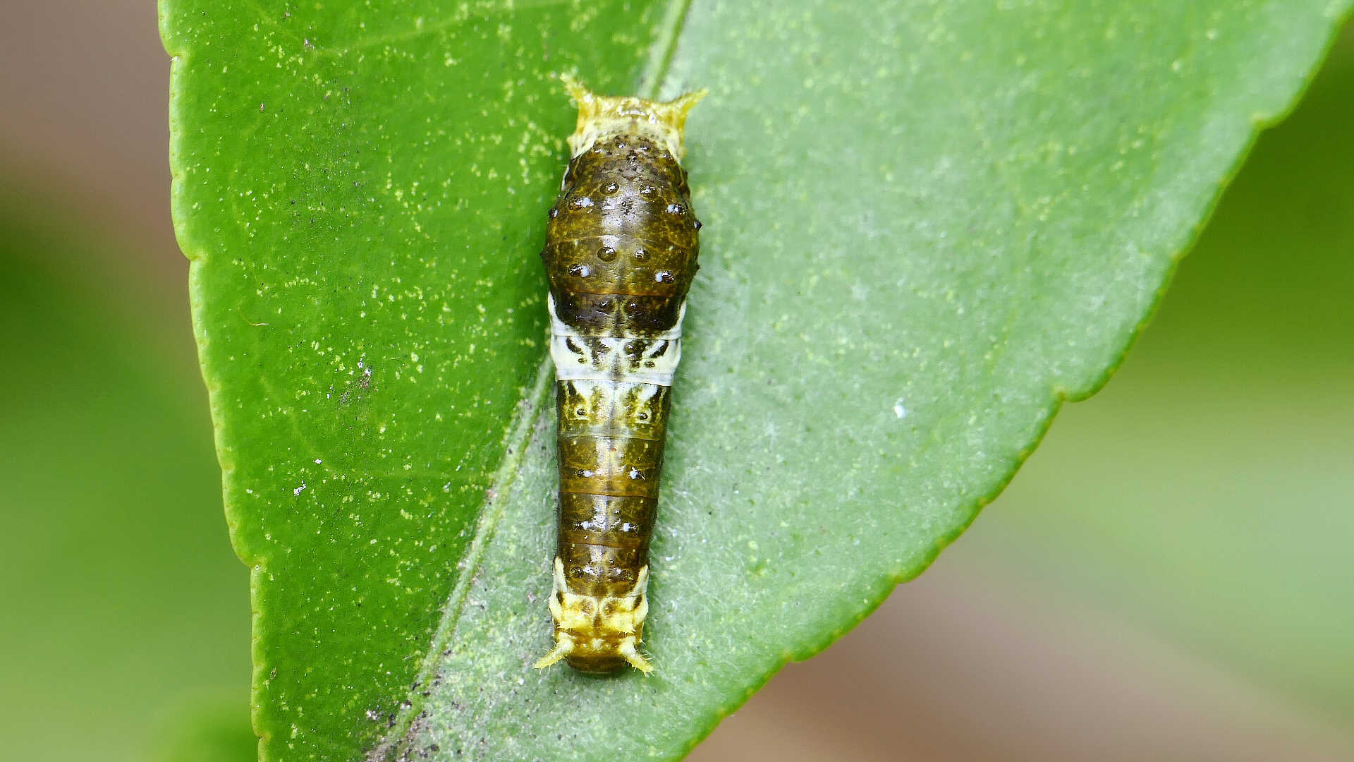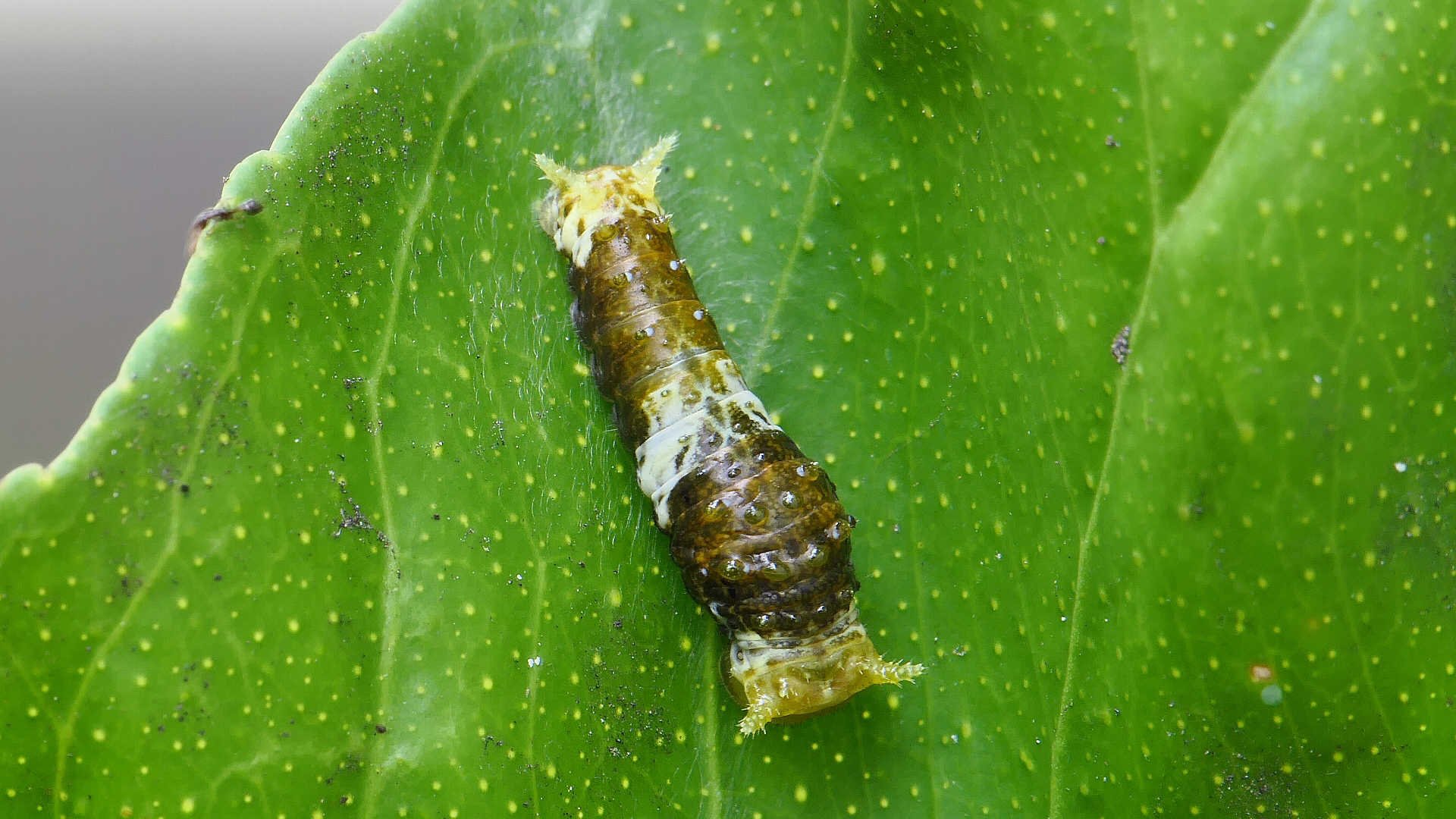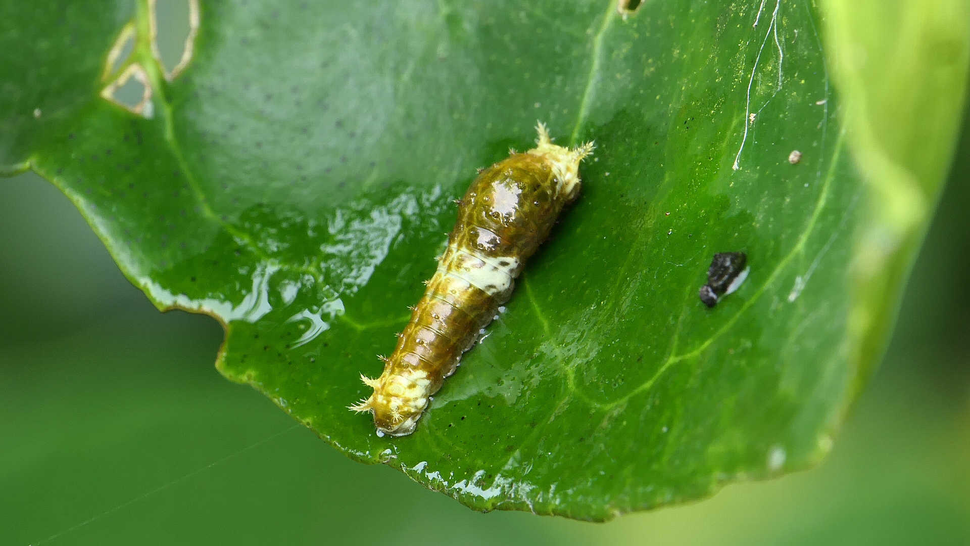 今日の一枚_04。ゴマダラチョウ、幼虫。近所の公園。
