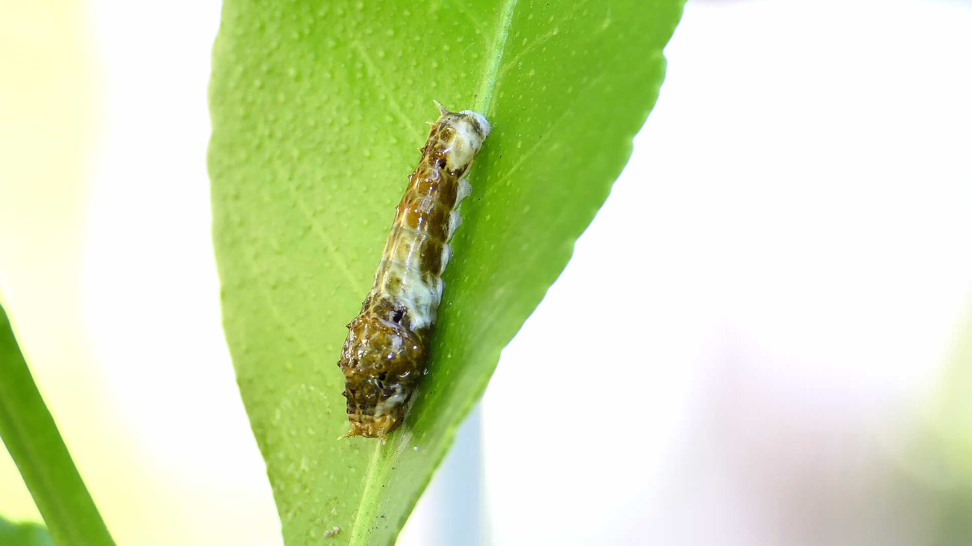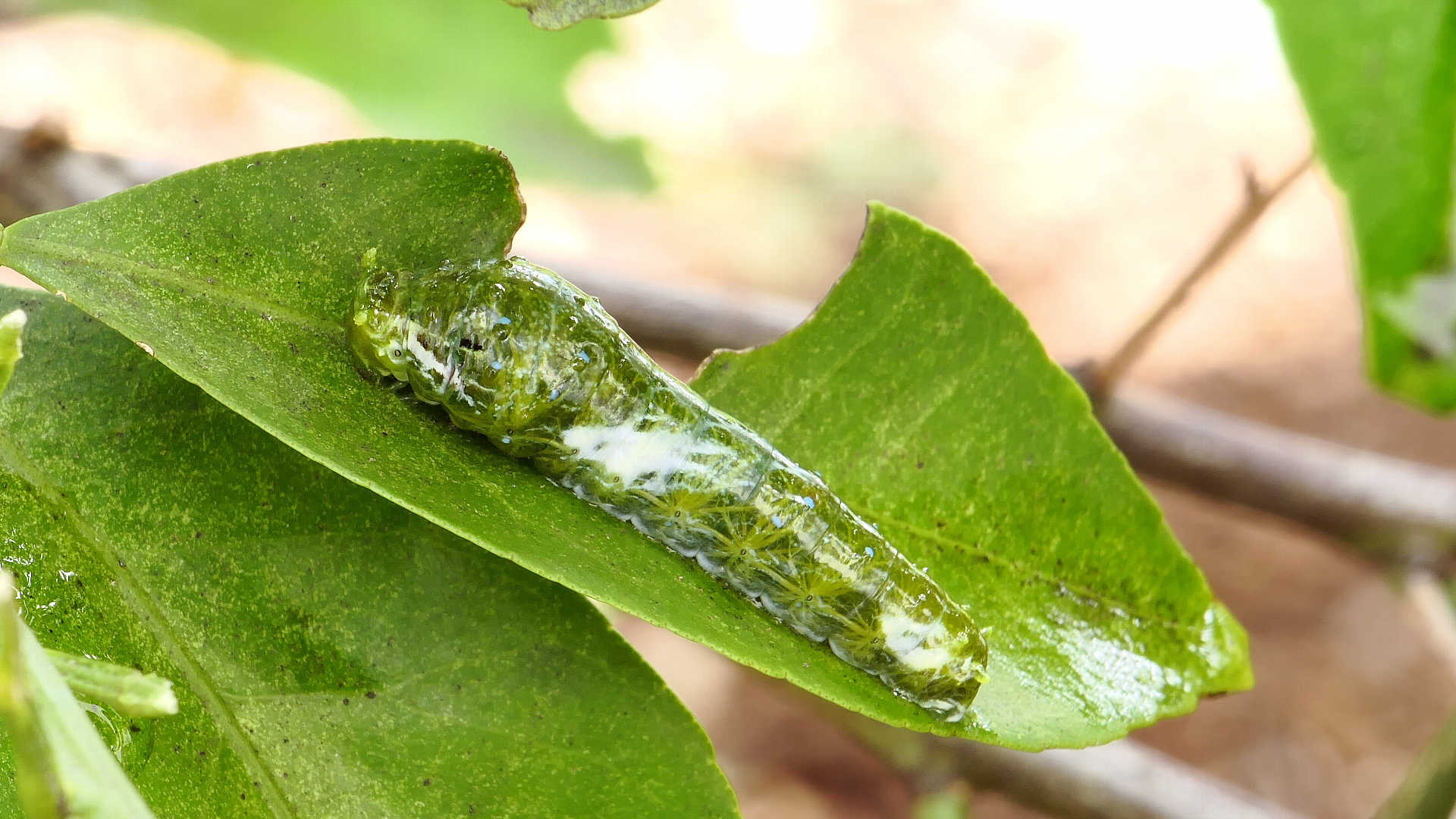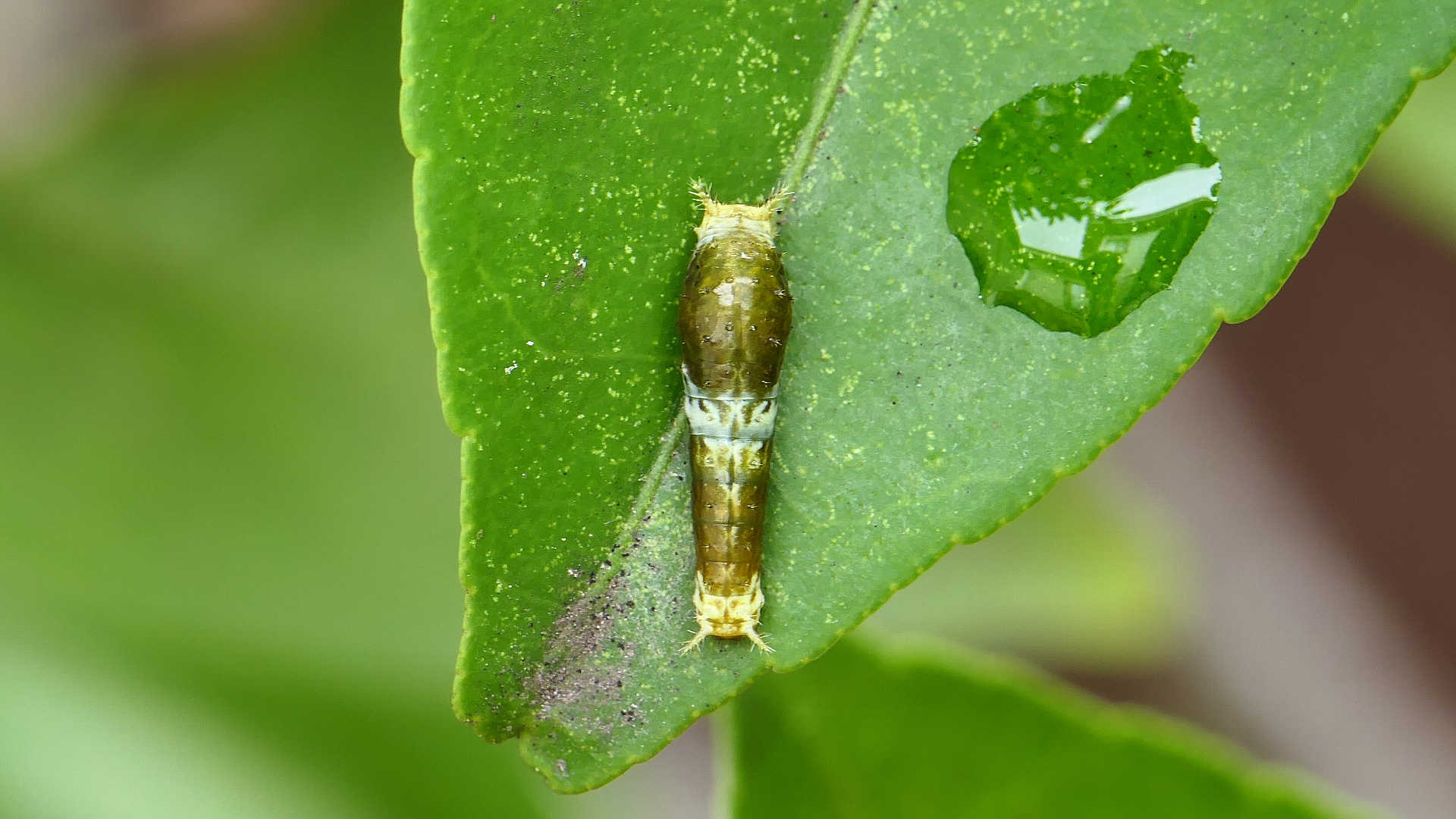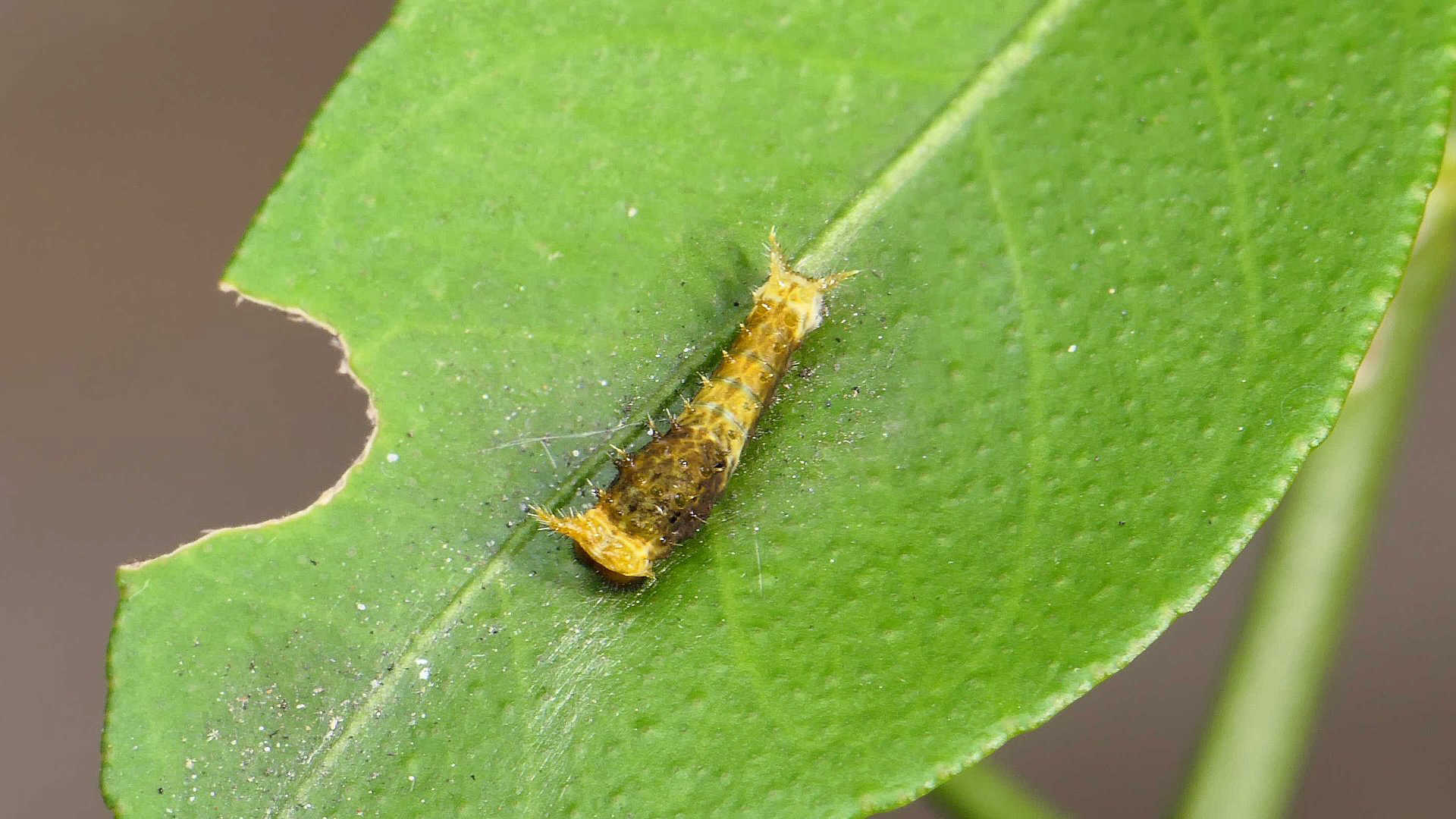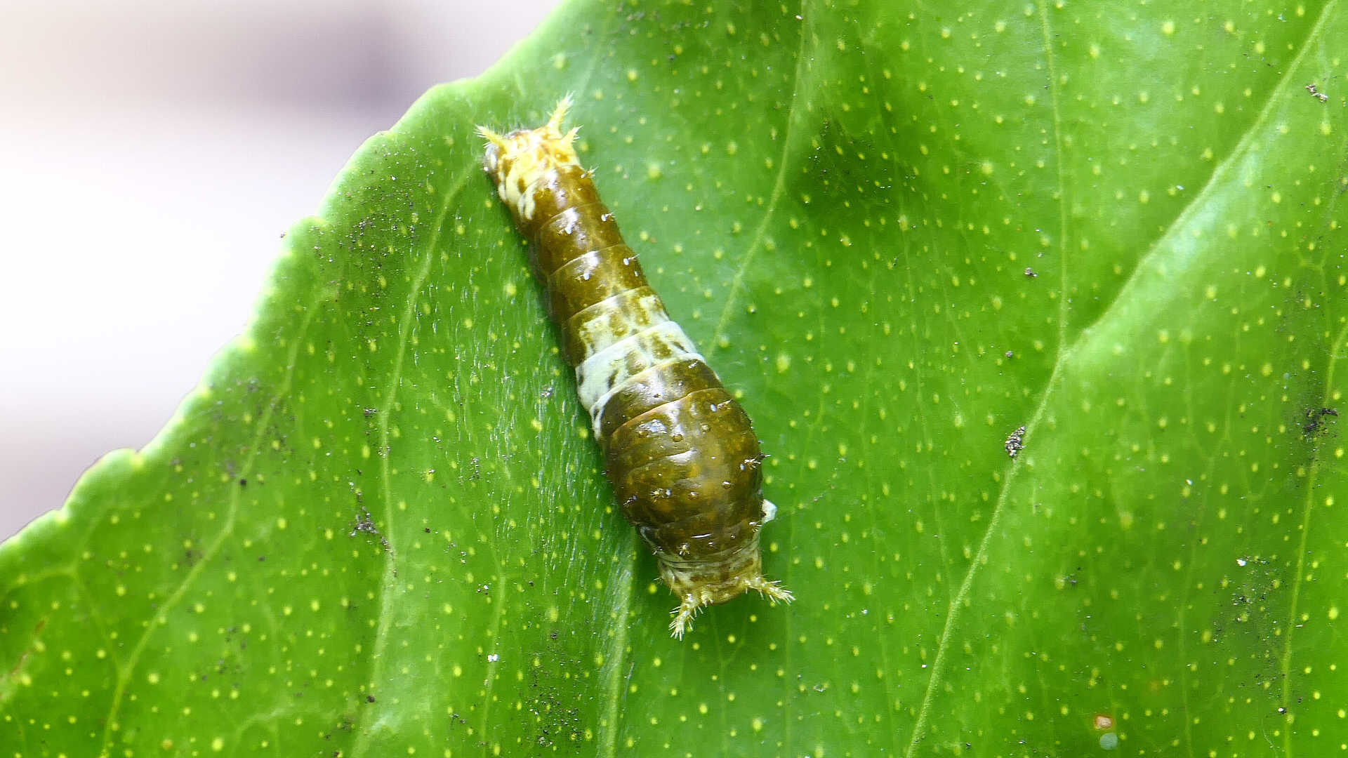 今日の一枚_04。ゴマダラチョウ、幼虫。近所の公園。