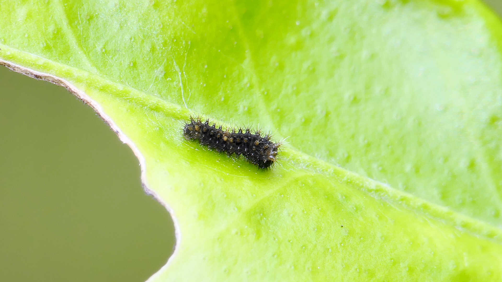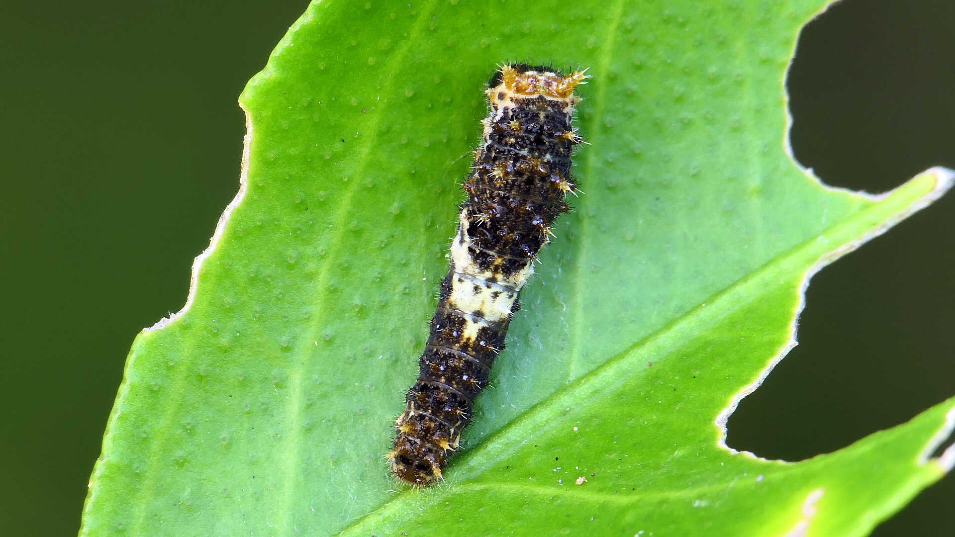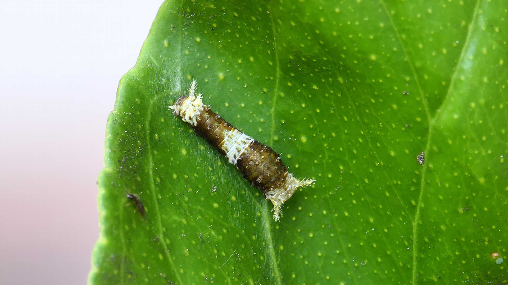 今日の一枚_02。ゴマダラチョウ、幼虫。2齢。近所の公園。