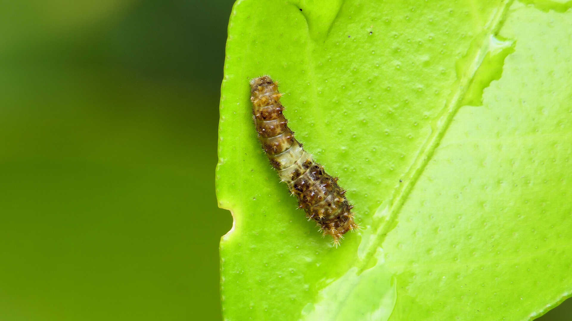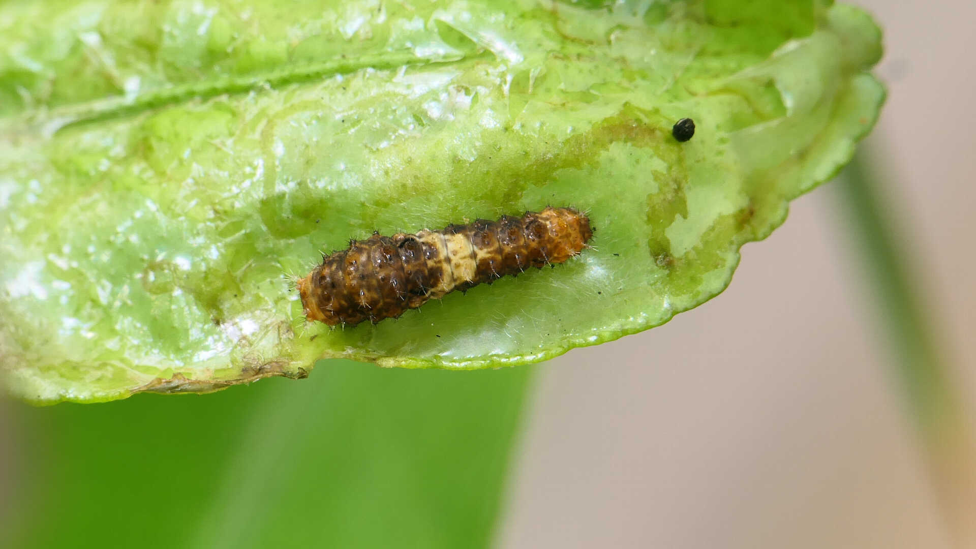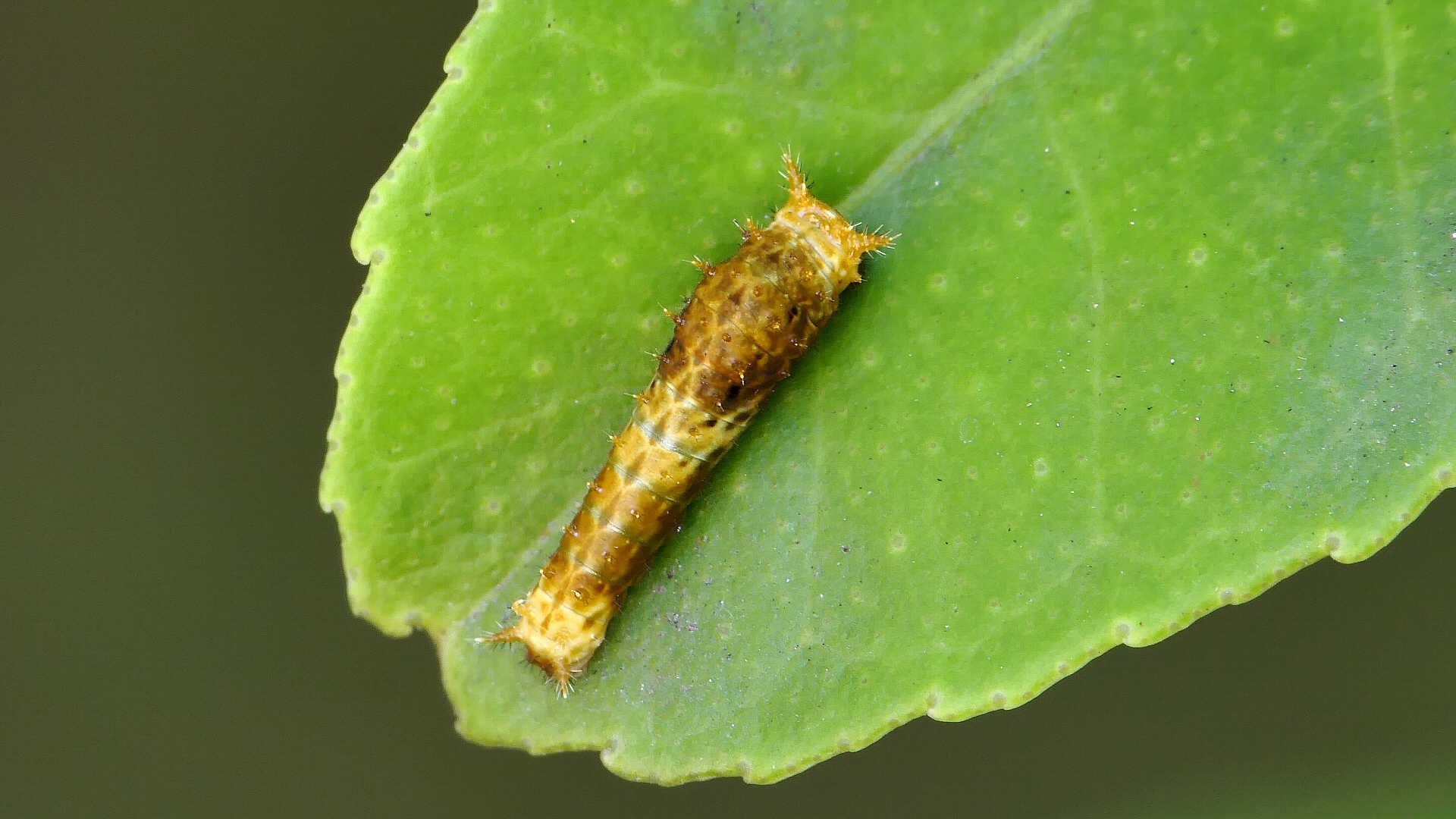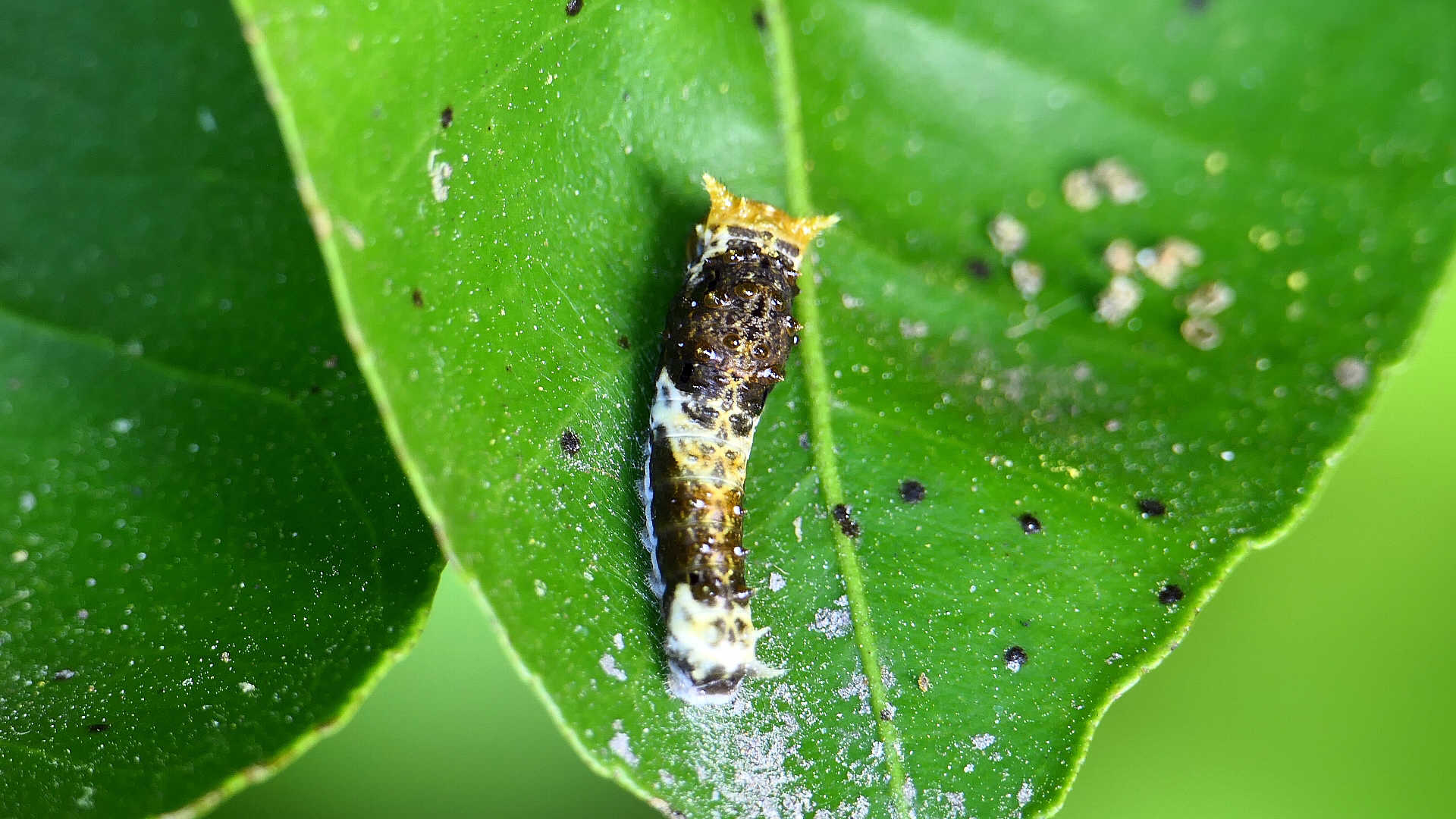 今日の一枚_02。ゴマダラチョウ、幼虫。2齢。近所の公園。