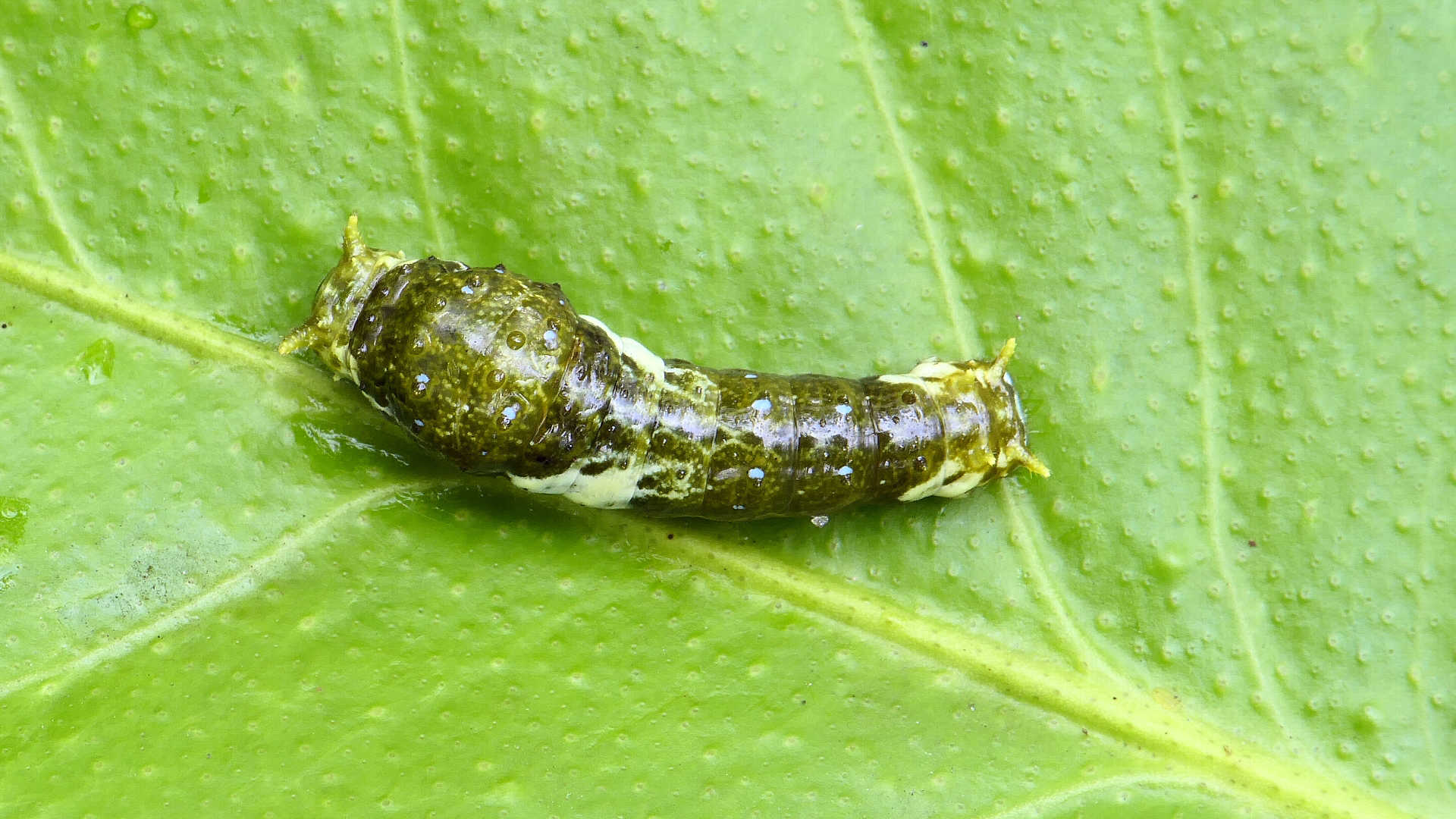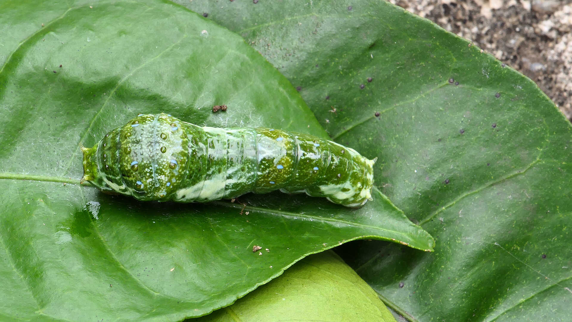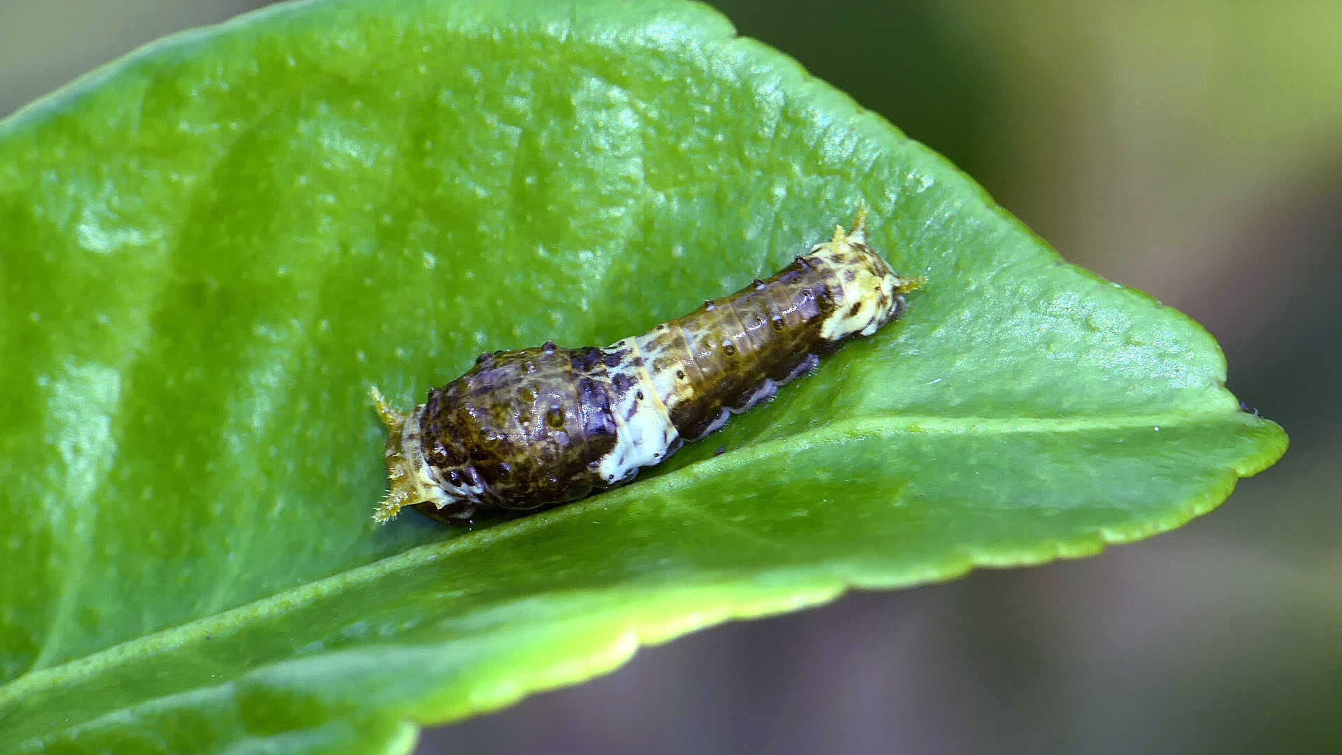 今日の一枚_01。ゴマダラチョウ、幼虫。近所の公園。