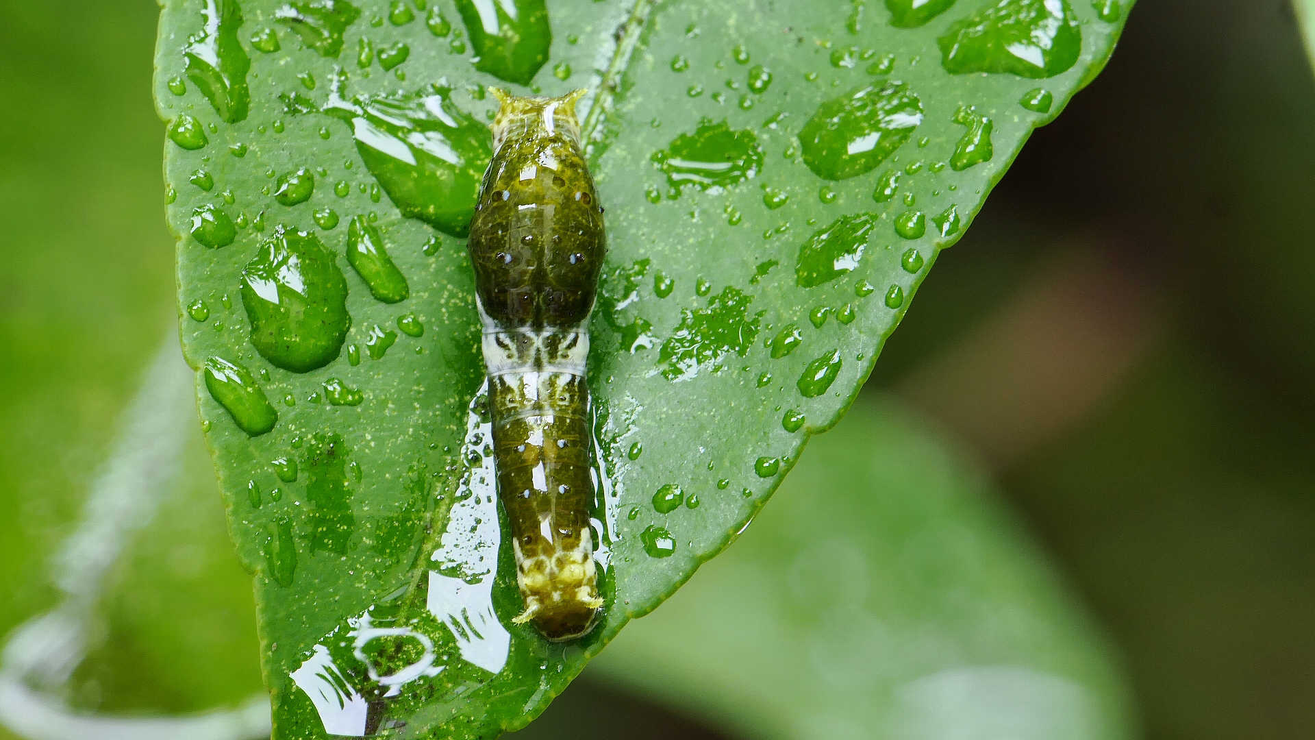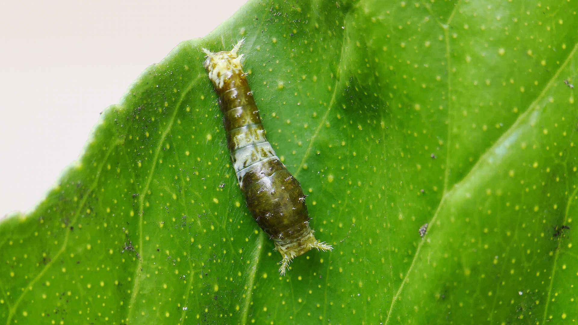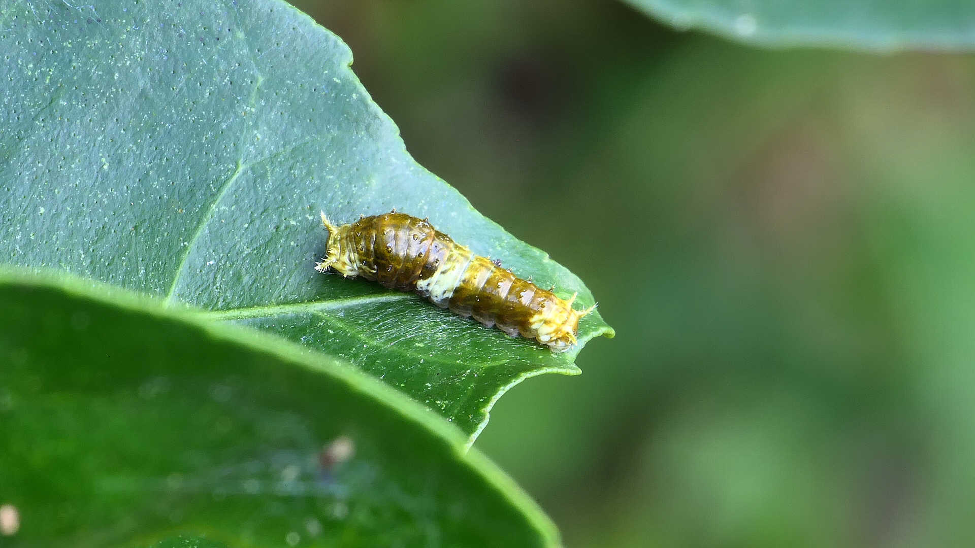 今日の一枚_05。ゴマダラチョウ、幼虫。近所の公園。