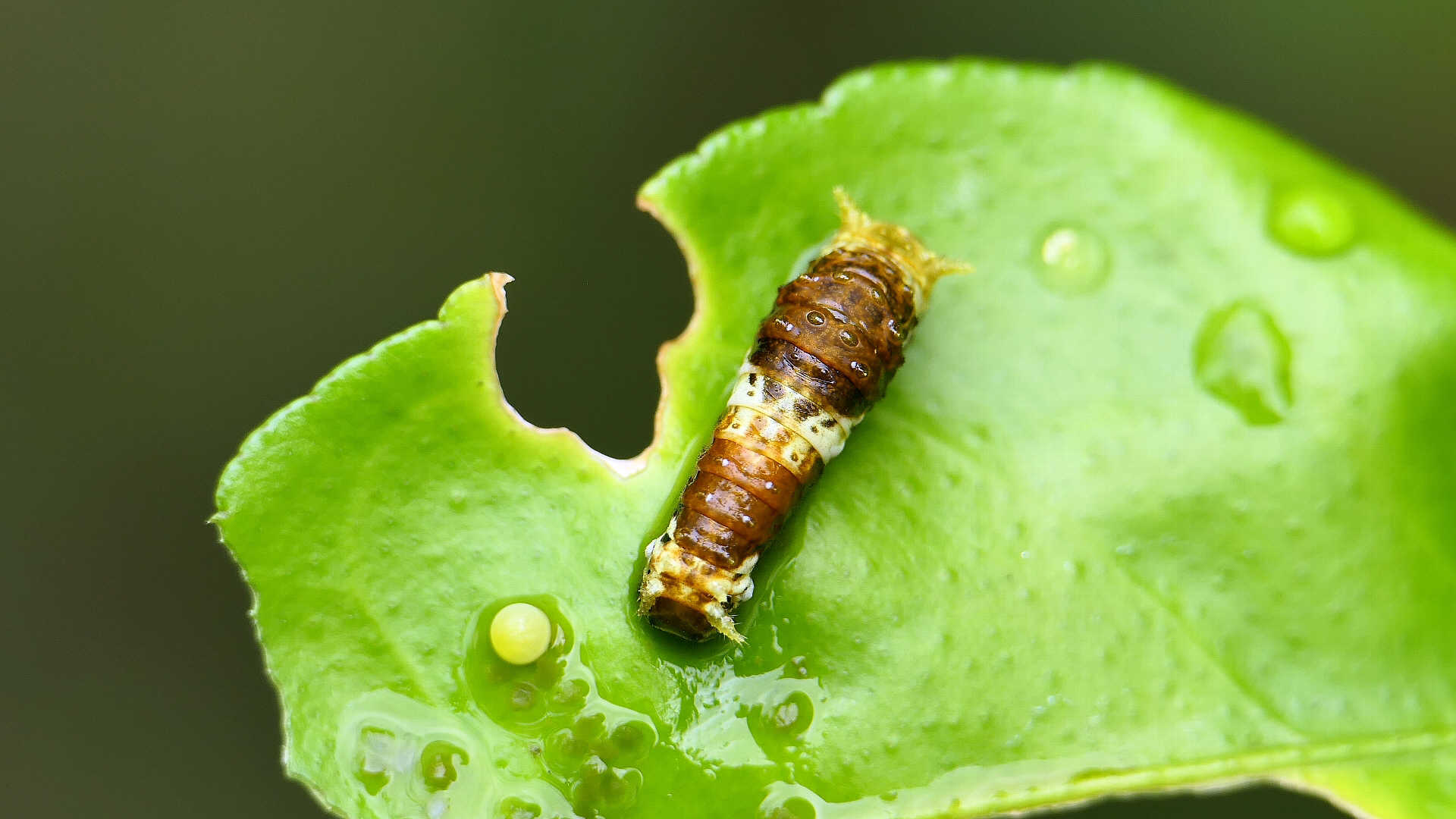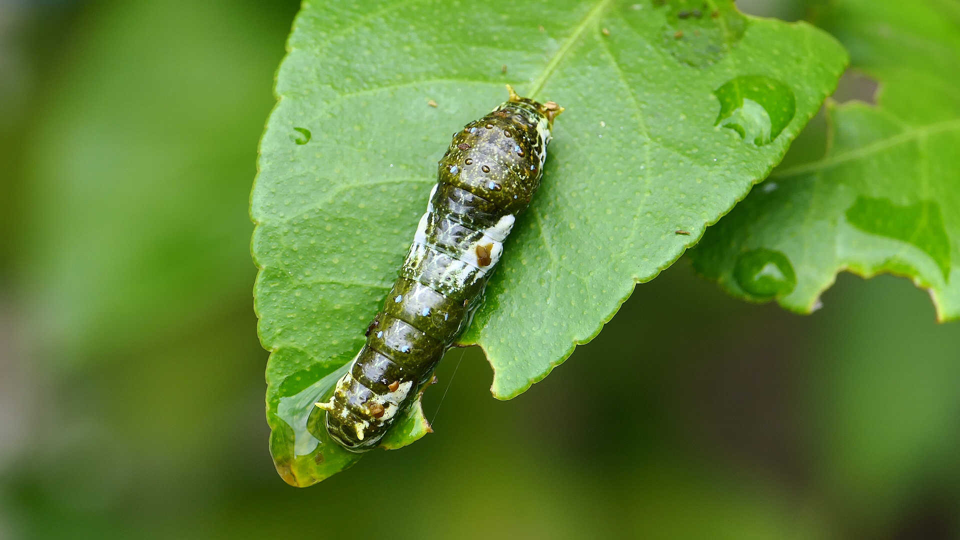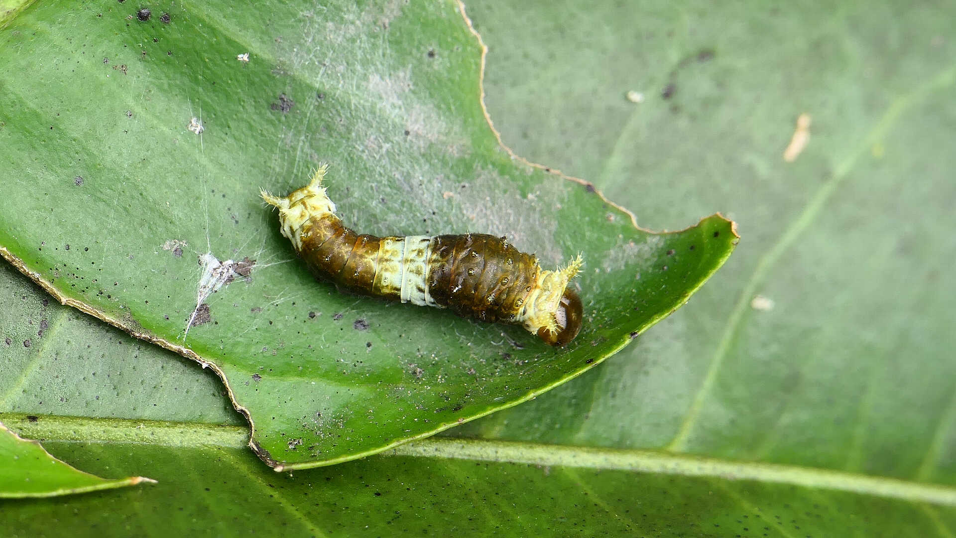 今日の一枚_05。ゴマダラチョウ、幼虫。近所の公園。