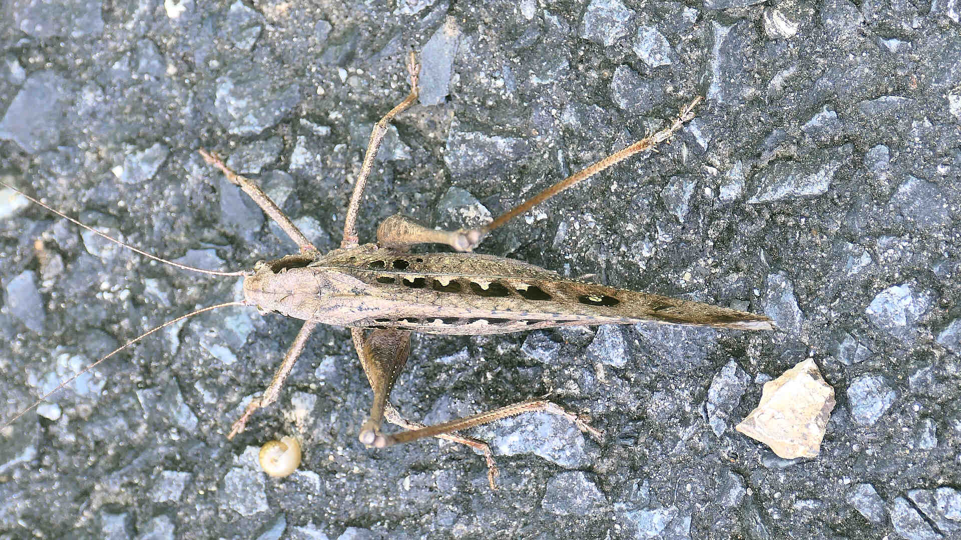 今日のおまけ_01_01。キオビエダシャク、♀。開翅。尾部の形状から♀と判断した、間違っているかも。大野川河川敷花園。