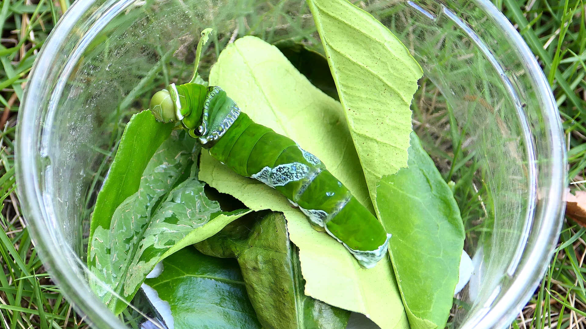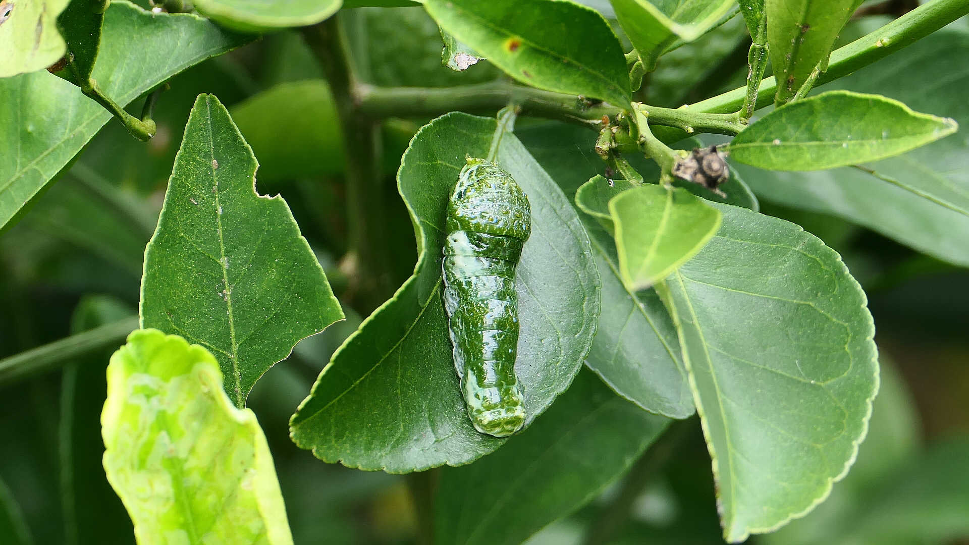 ナガサキアゲハやクロアゲハの幼虫を飼っている。以前はガラスの花瓶に隙間の無い様に挿したミカンの小枝をそのままやや大きい水槽に入れて育てていた。でも葉っぱが数日もすると萎れてしまい、小枝の交換に手間が掛かっていた。今は100円ショップの透明な蓋付きの丸いポリエステル容器で育てている。蓋には熱した針金で幾つか小さな穴を開けている。これに少し湿した脱脂綿とミカンの葉を入れて居る。湿した脱脂綿は葉っぱが萎れてしまうのを防ぐため。この方法で少し小枝があればエサは十分に足りる様になったが、星になる幼虫が幾つか発生してしまう様である。小枝で育てている時は星になる幼虫は居なかった。小さな空気穴が少しあるだけで、湿っぽいのが良くないのかも知れない。