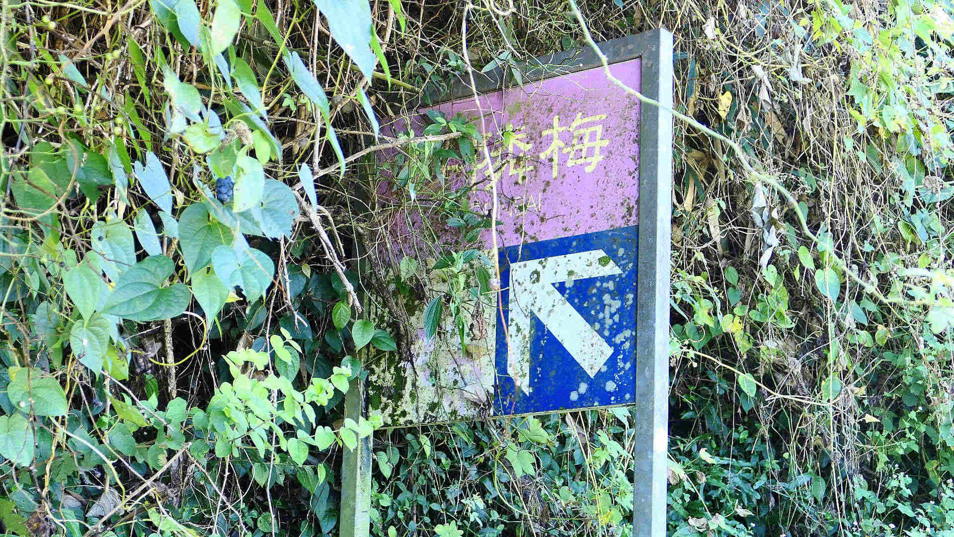 国道220のヤシの並木に沿いながら南へ南へ行く。この道路は宮崎らしくて何時走ってもとても気持ちが良い。そのまま走って県道377に入り青島方面へ行くと直ぐに右のT字路に「好隣梅」の道しるべ。