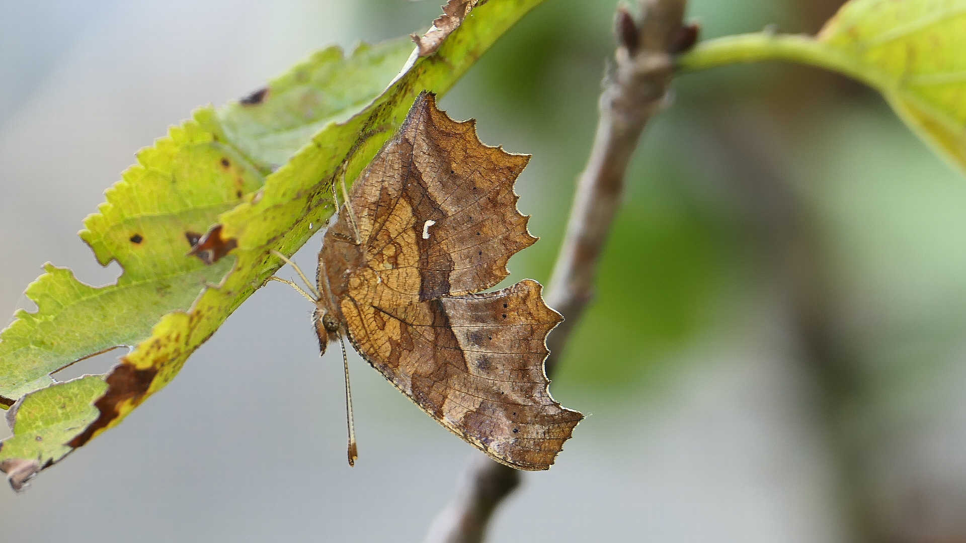 今日の一枚_02。キタテハ、♂。閉翅。自宅。