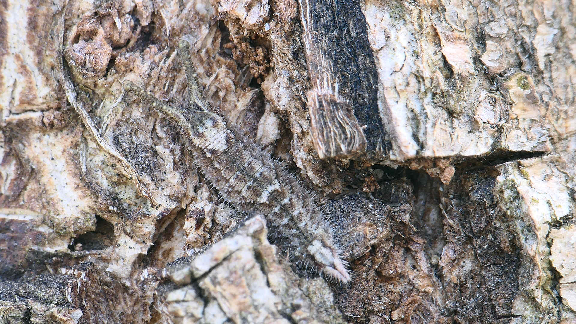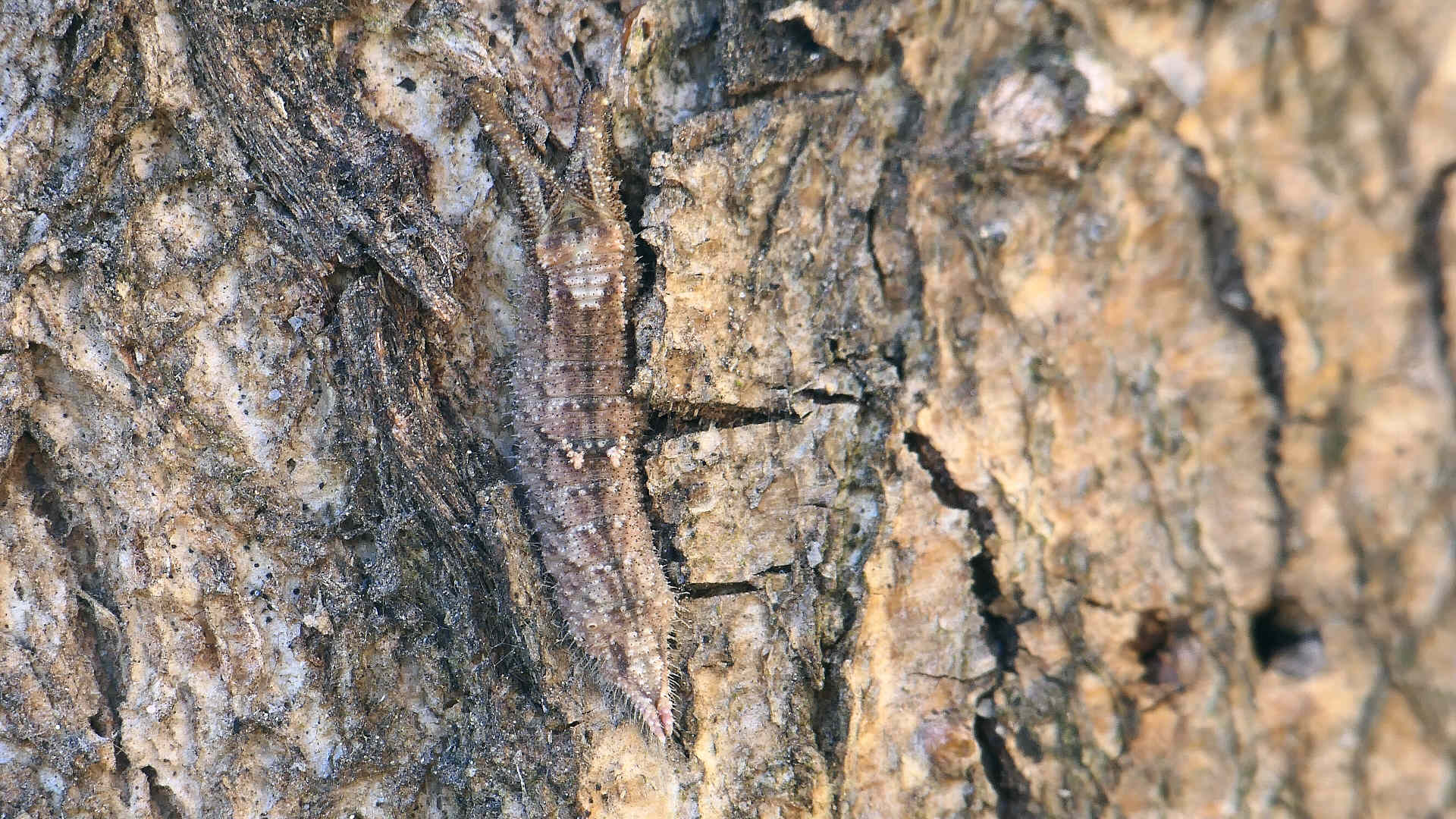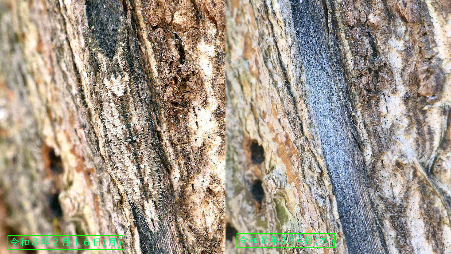 01〜03は樹幹越冬中の幼虫。長い冬を樹皮に擬態して過ごす。