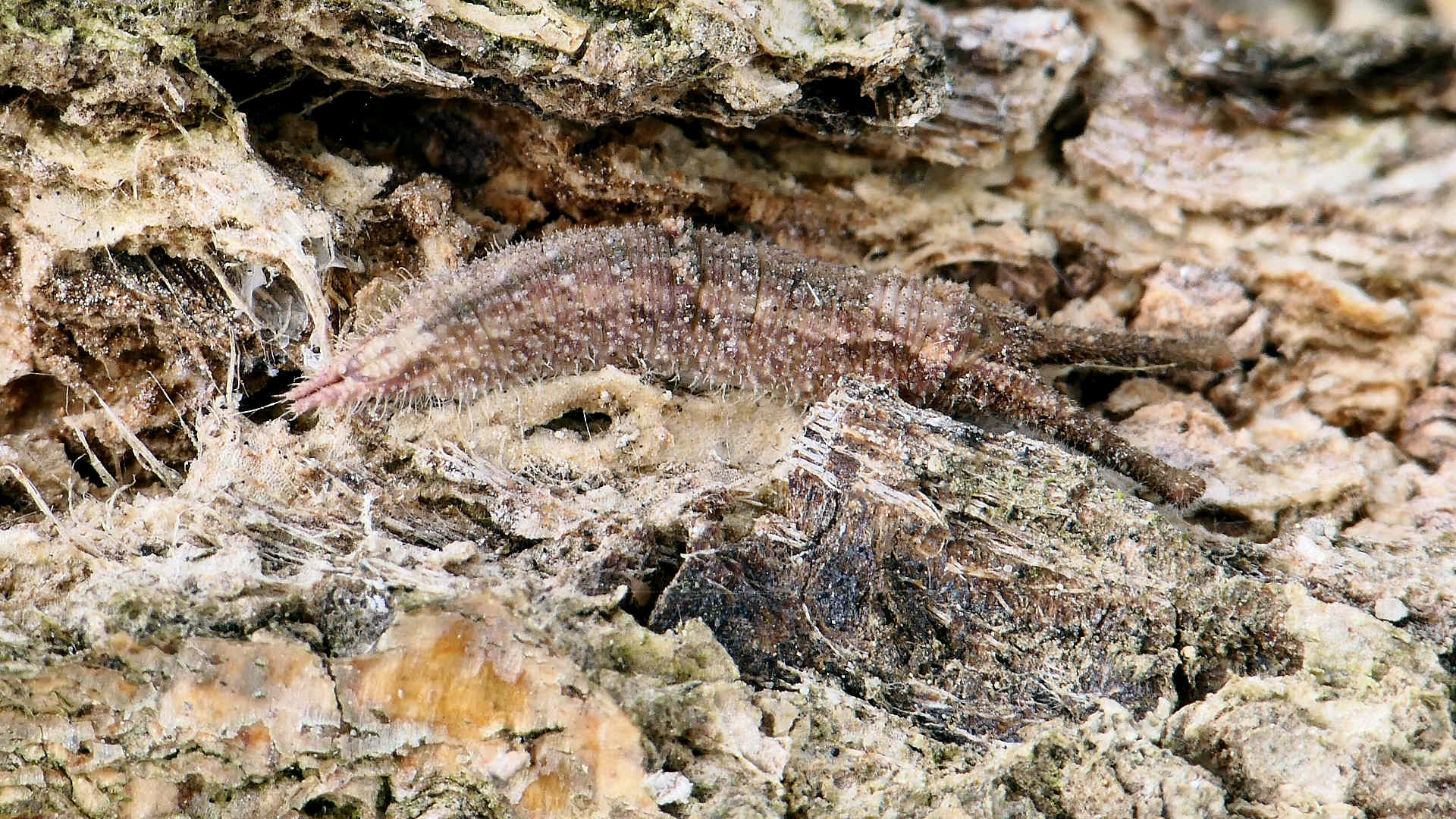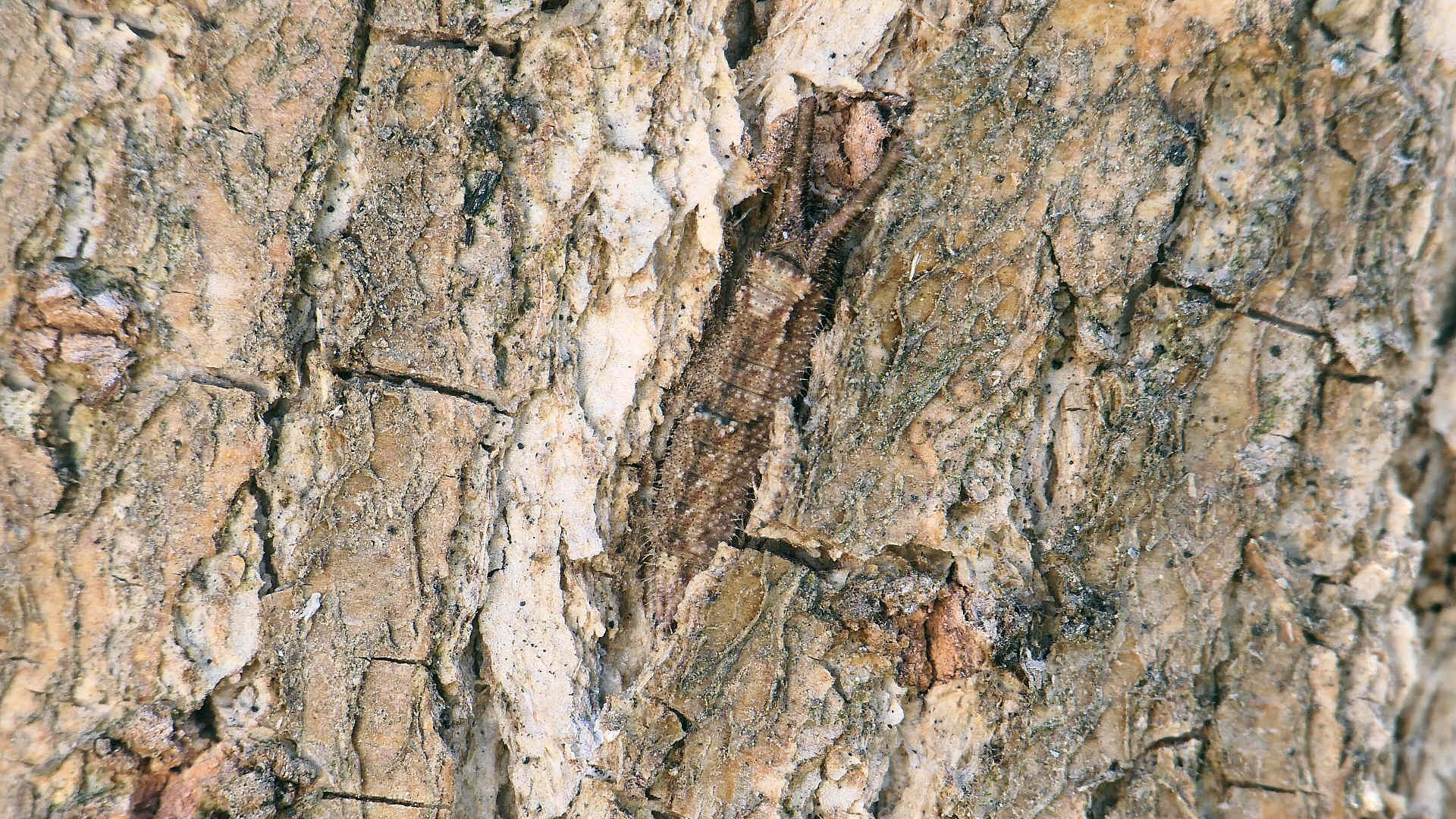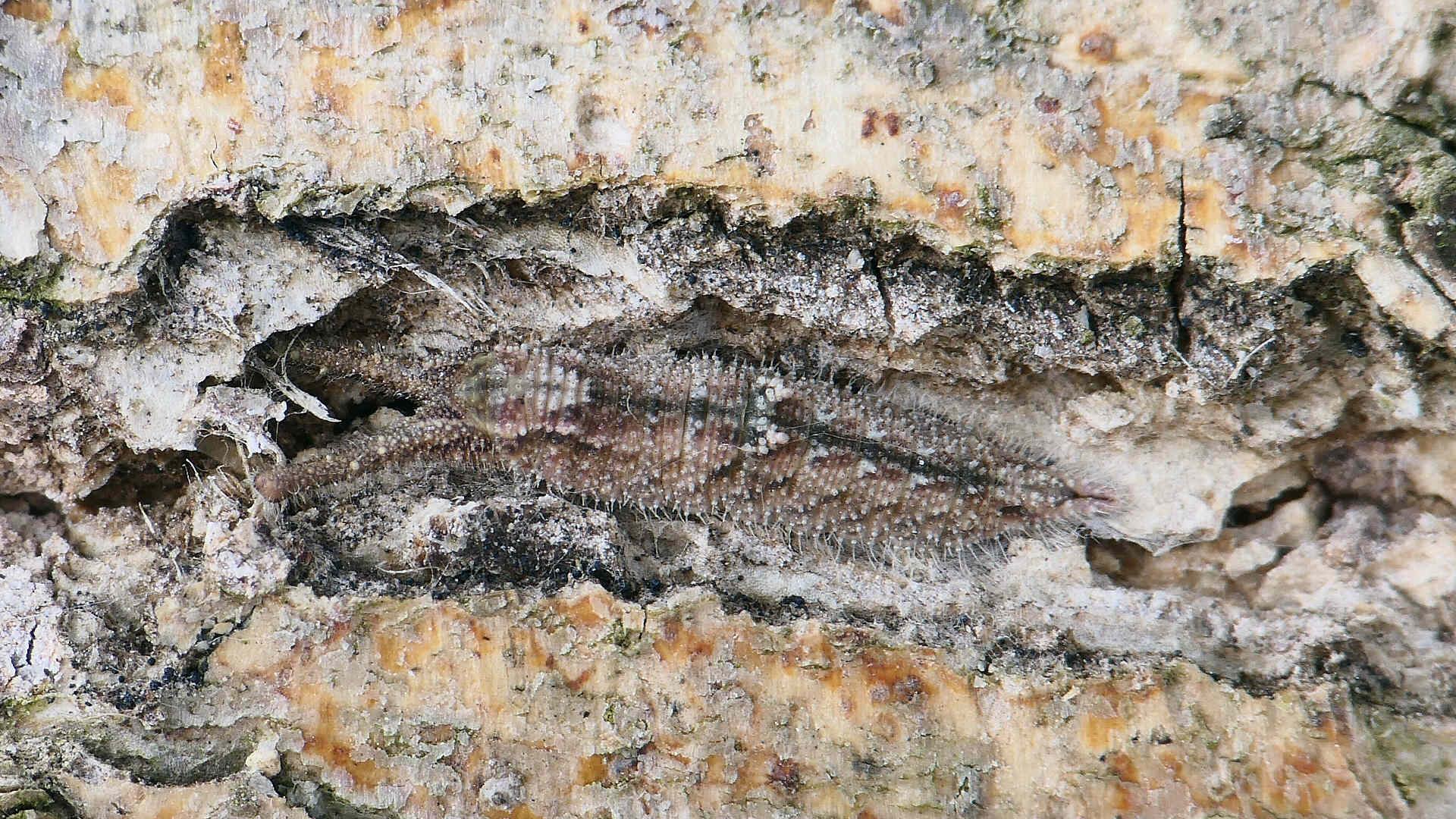 01〜03は樹幹越冬中の幼虫。長い冬を樹皮に擬態して過ごす。