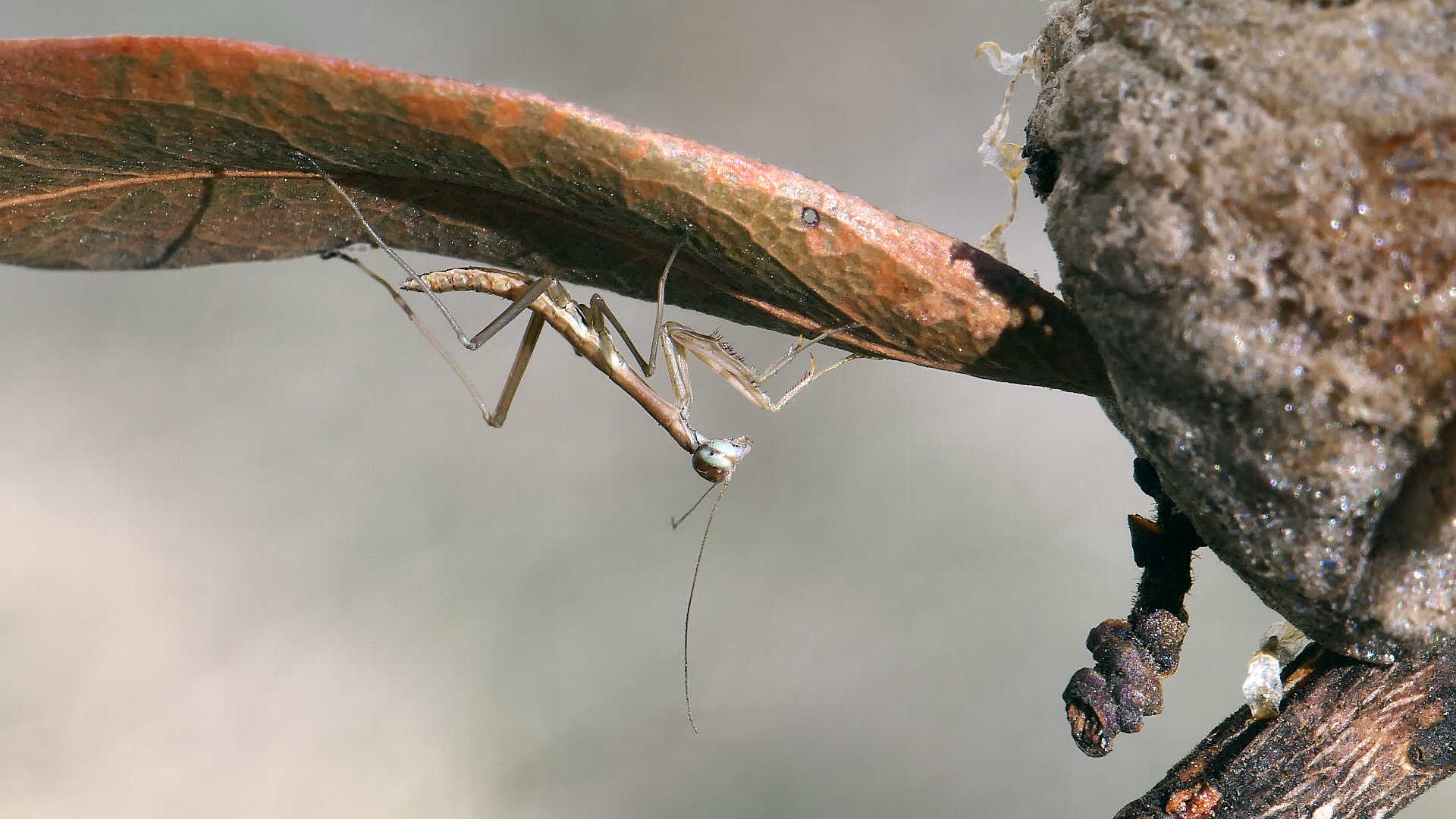 今日のおまけ_01。オオカマキリ、幼虫。外に置いていた卵が孵化した。ちょっと時季が早いように思う。