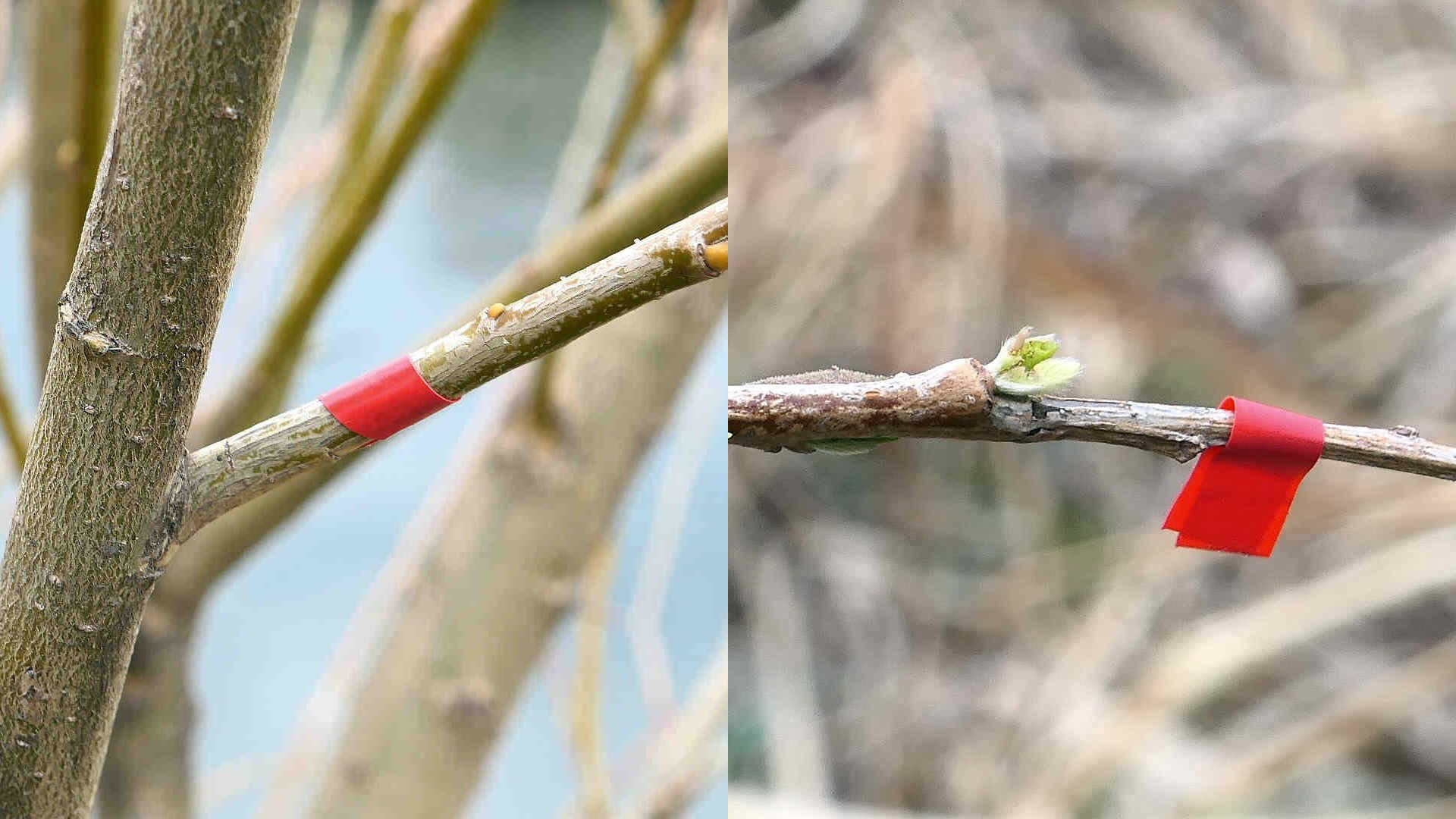 今日の一枚_01。小枝に付けた赤い目印。高田橋上流。