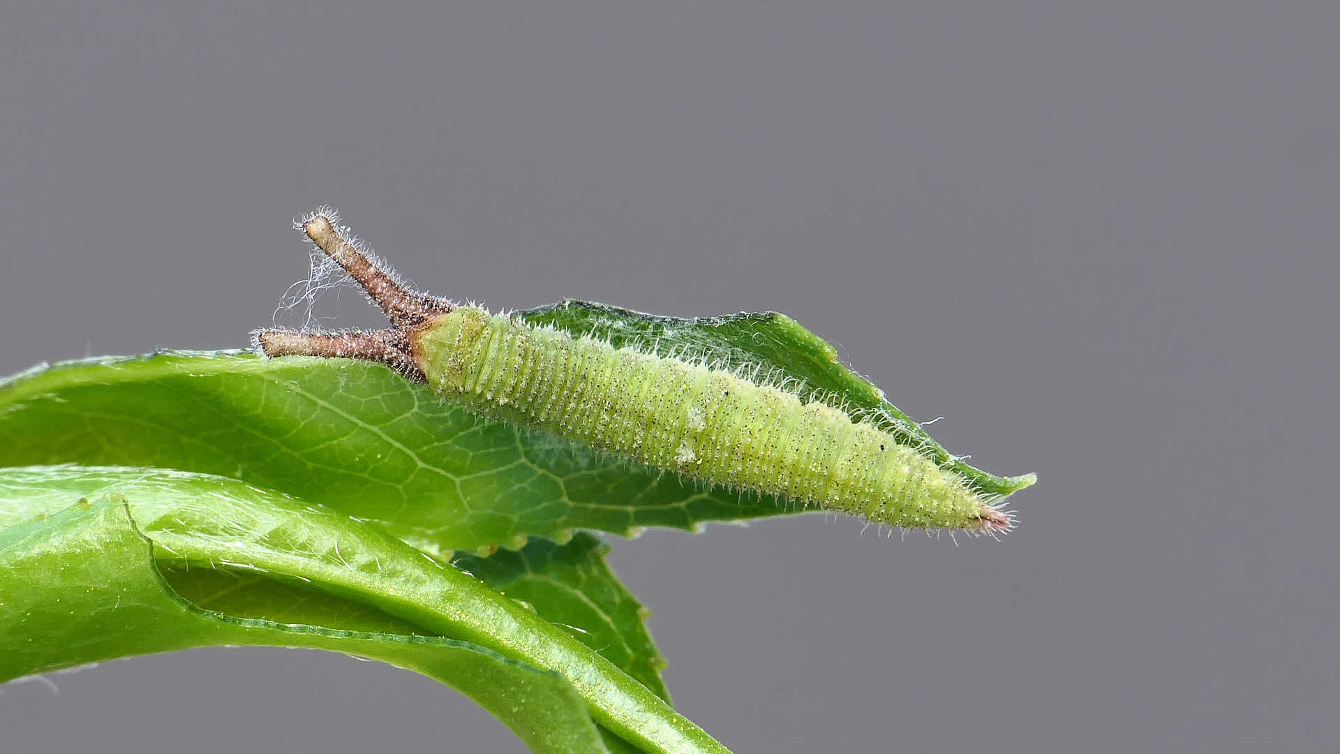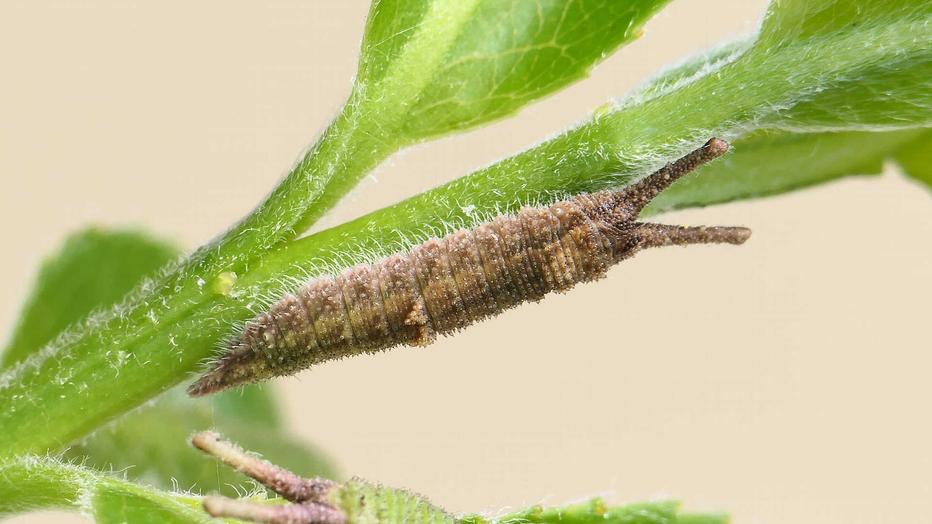 今日の一枚_06_02。コムラサキ、目覚めて間のない幼虫。高田橋上流。