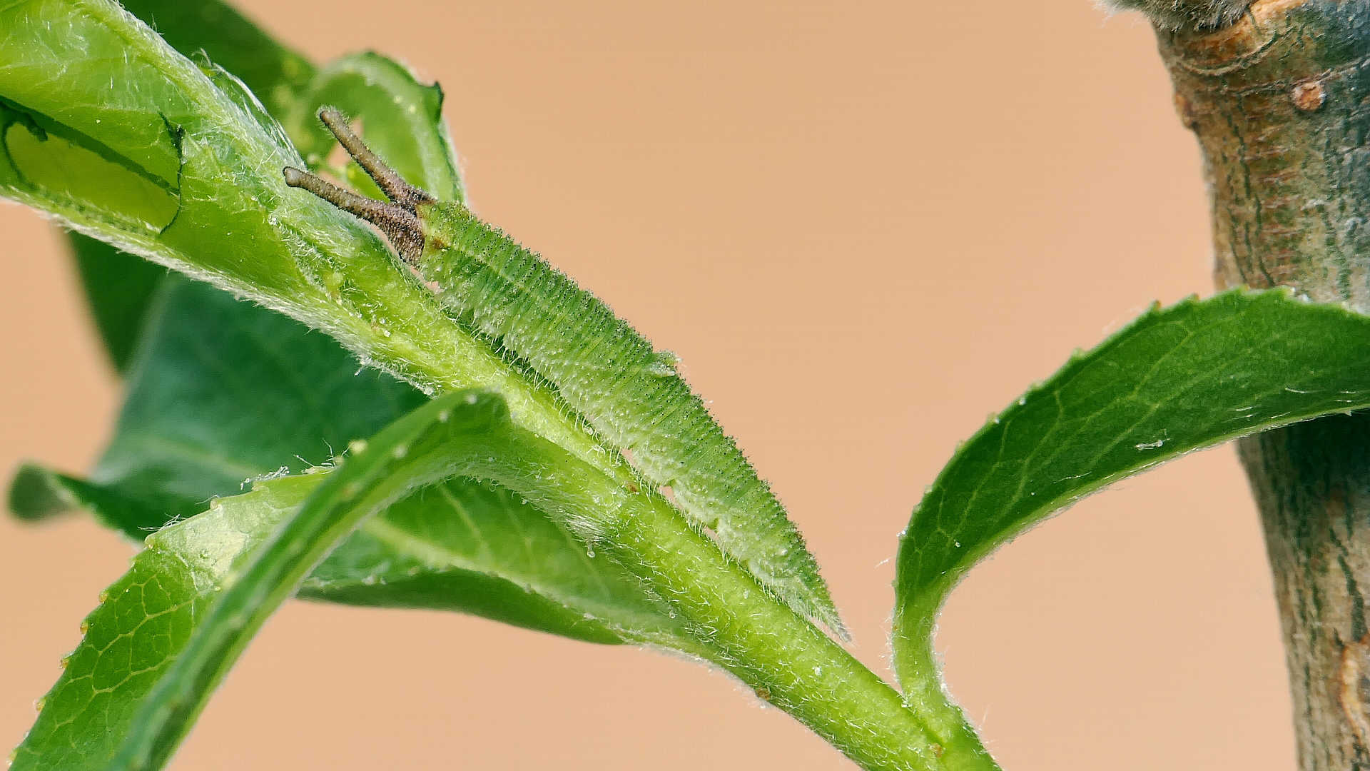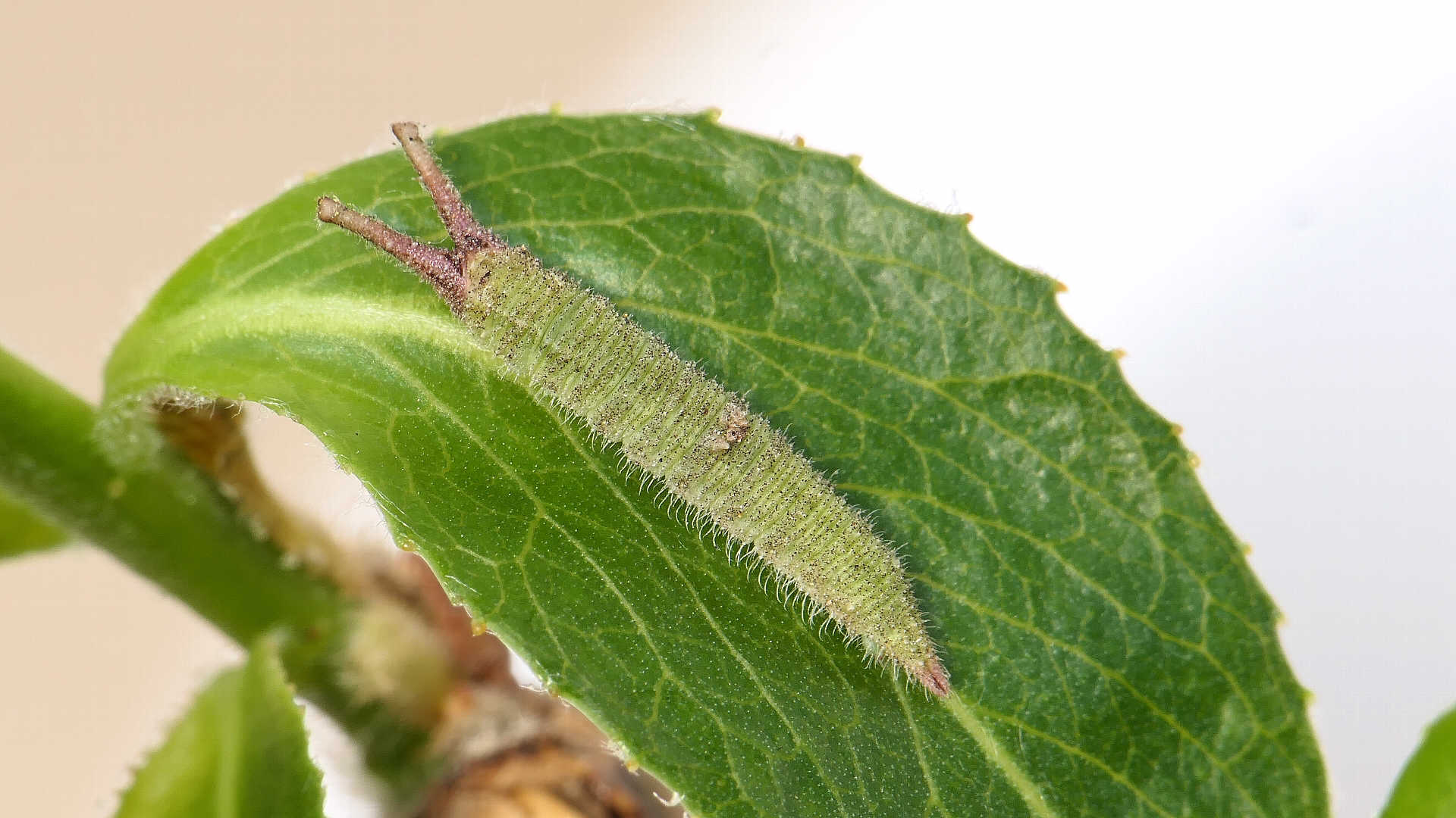 今日の一枚_08。ゴマダラチョウ、幼虫。自宅。