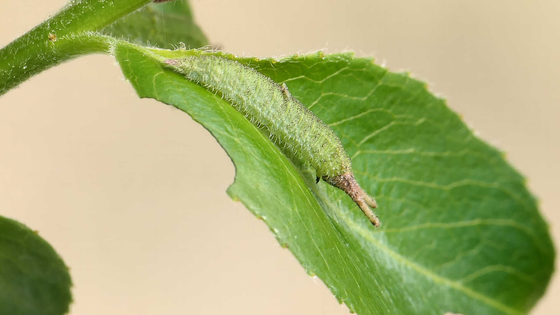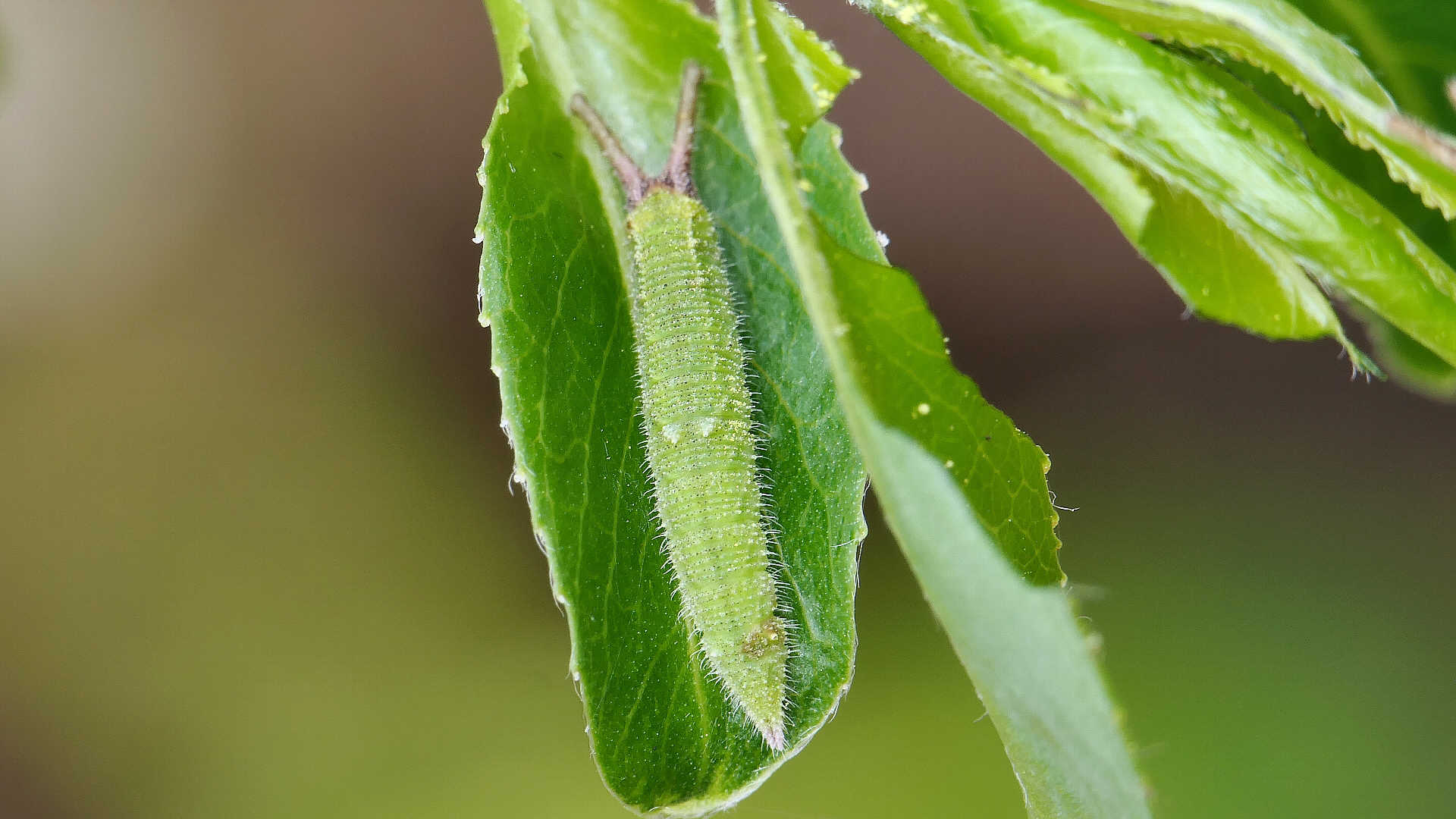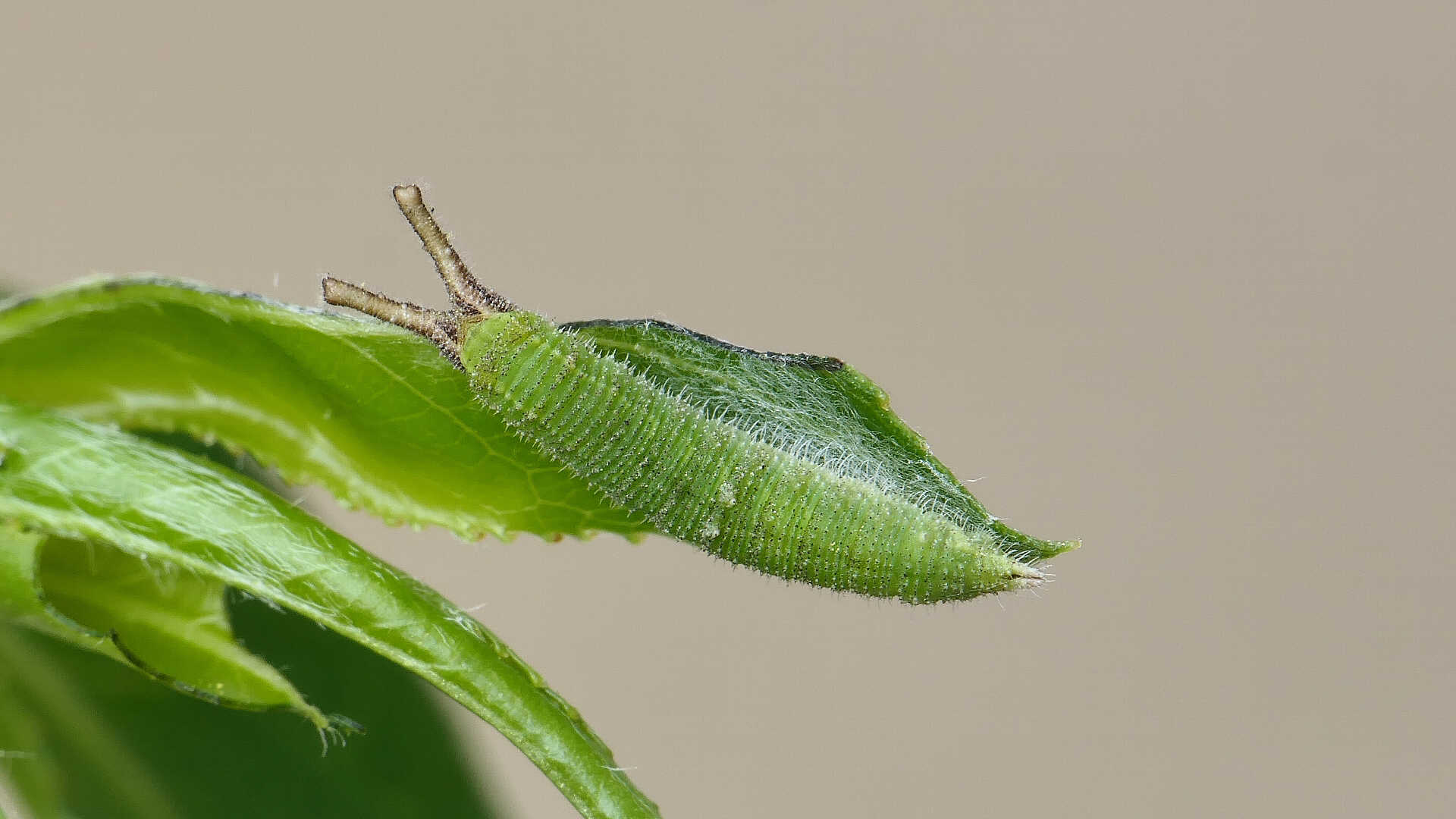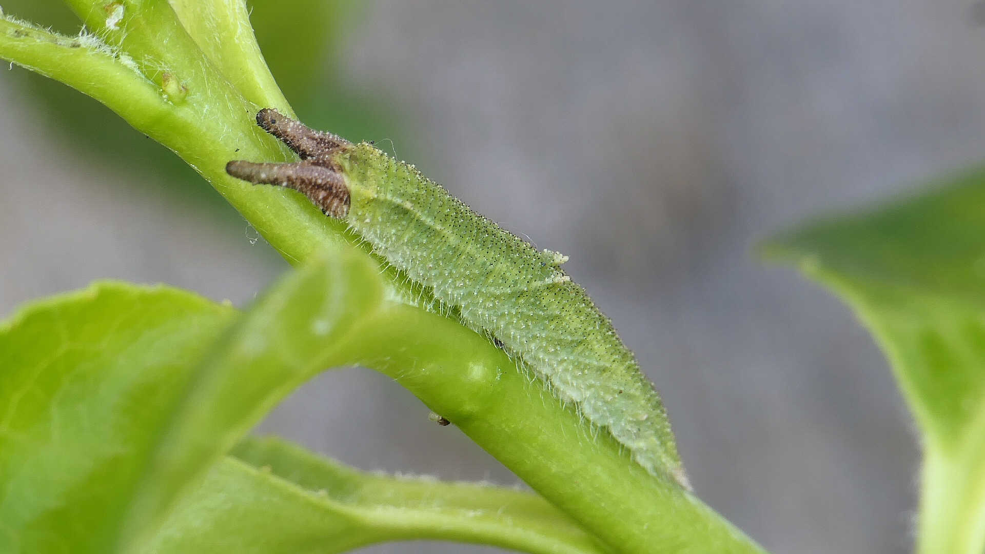 今日の一枚_06_01。コムラサキ、目覚めて間のない幼虫。高田橋上流。