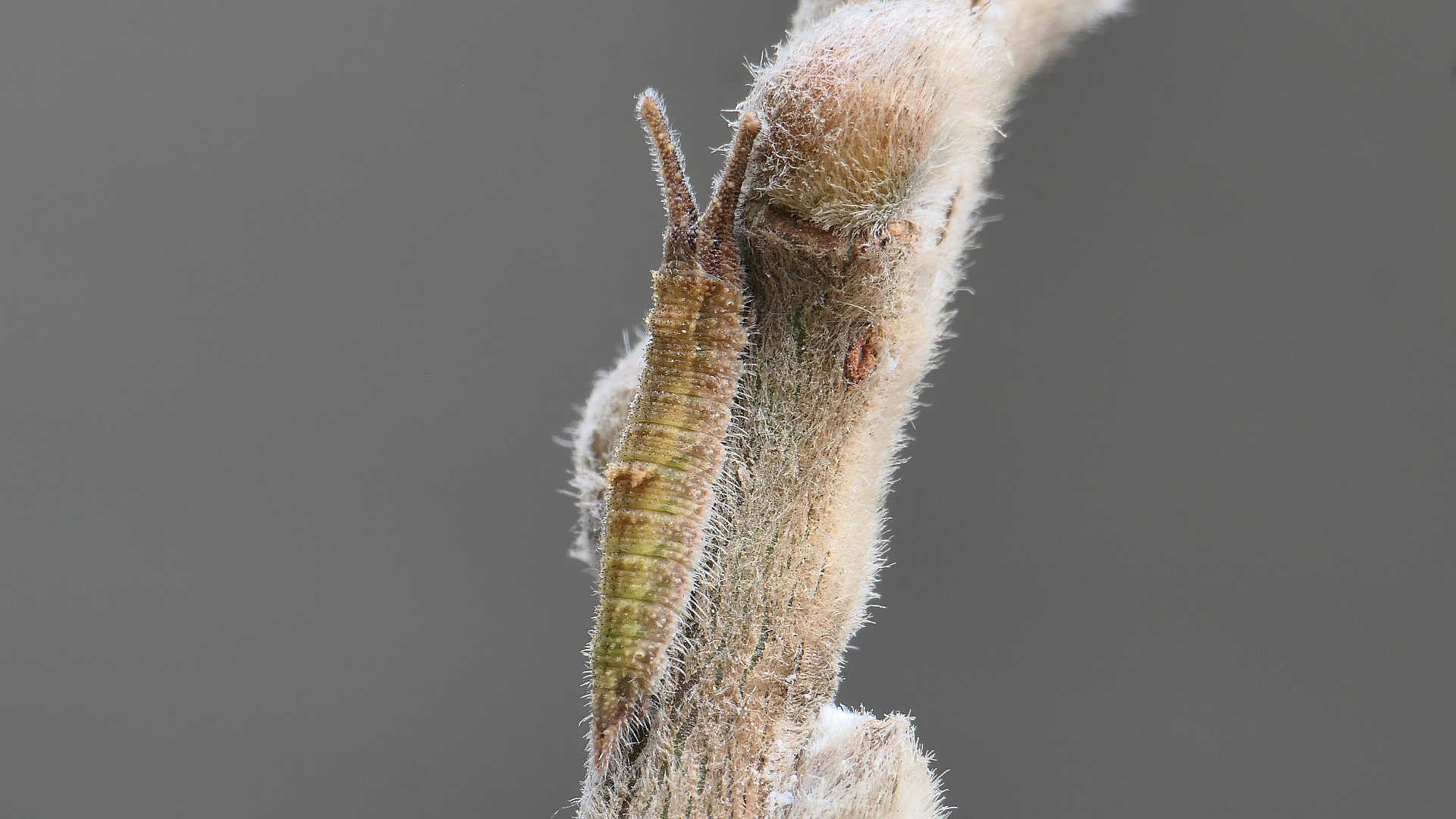 今日の一枚_04。コムラサキ、目覚めて間のない幼虫。自宅。