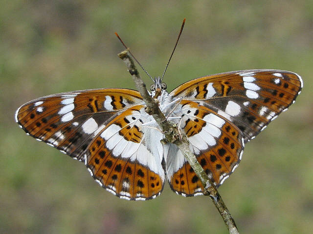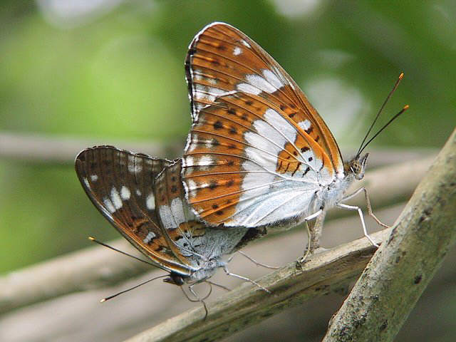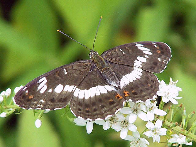 イチモンジチョウ 平成17年6月18日(土)。左♂、右♀。黒岳山麓。 平成15年8月2日(土)。大分郡野津原町。♀。♀は色がやや薄く、橙色の斑紋がでる。 平成18年7月6日(木)。♀。竹田市、久住高原。 白い斑紋の出方が何となく図鑑のアサマイチモンジに似ています。 平成15年8月6日(水)。♀。直入郡直入町。 平成17年6月21日(火)。♂。竹田市久住町。 平成23年5月24日(火)。♂。豊後大野市。