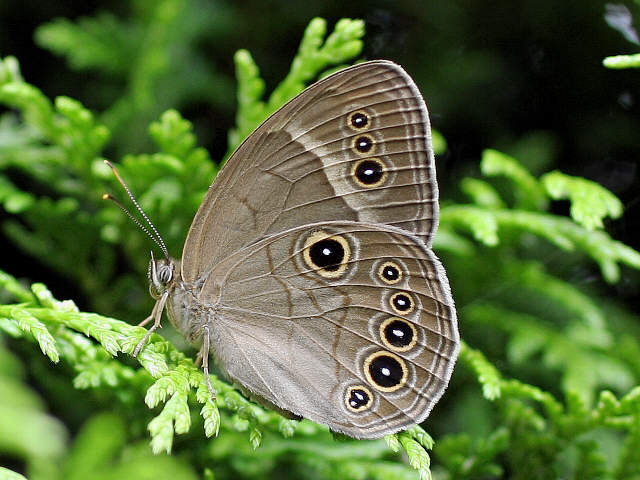 クロヒカゲモドキ 平成17年7月13日(水)。♂。黒岳今水登山口。 平成22年7月19日(月)。♂。地下深層水。 平成19年7月24日(火)。♀。飯田高原。 平成19年7月24日(火)。♀。飯田高原。 平成22年7月17日(土)。♂。飯田高原。 平成22年7月22日(木)。♂。飯田高原。